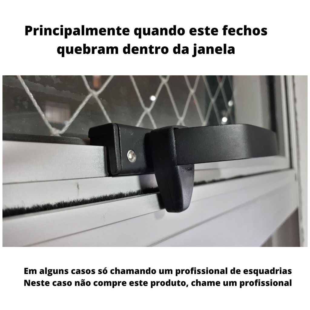 Fecho para janelas maxim ar linha Suprema Modelo Fecho maxim ar Linha Suprema FMA70 Marca ROTO FERMAX Cor Preto Indicada para janelas tipo maxim ar de alumínio, sempre da linha Suprema ou com corte reto da linha 25. Muitas janelas permitem a troca do fecho sem a remoção do vidro, mas há janelas em que a remoção do vidro é necessário para a troca deste fecho, principalmente quando o fecho antigo quebra dentro da folha. Dica importante: Compre este fecho somente após conseguir fazer a remoção do antigo fecho que deve estar quebrado dentro da janela, pois após retirar o antigo fecho, colocar este é só um clic bem fácil. NÃO SERVE PARA JANELAS MAXIM AR DE MADEIRA