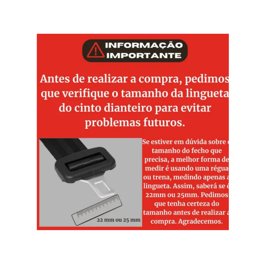 Seja bem vindo, você está na CGA IMPORTS, priorizamos soluções de segurança duráveis, eficientes e práticas. Estamos animados em lançar o Fecho do Corsa 22mm ou 25mm, uma opção confiável para proteger seus espaços com eficácia e elegância. ===================== Informações do Produto. ===================== Obs1: VOCÊ SABIA QUE O FECHO DO CINTO DE SEGURANÇA DOS VEÍCULOS GM TEM DUAS MEDIDAS DIFERENTES ? SENDO LINGUETA COM 2,2 CM OU 2,5 CM. CONFIRME A MEDIDA DA LINGUETA DO SEU CINTO DE SEGURANÇA, E ESCOLHA O FECHO COM A MEDIDA CORRETA QUE ATENDA O SEU CINTO. Obs2: FECHO PARA ADAPTAÇÃO. Anúncio: Fecho Fêmea Lingueta Fina 2,2 cm / 22 mm Ou Lingueta Larga 2,5 cm / 25 mm. Quantidade da embalagem: 02 unidades 1 para Lado Direito (passageiro) e 1 Lado Esquerdo (motorista). Medida: 16 cm. Material: Plásticos de engenharia e partes metálicas em aço temperado. Fabricante: Ami Cintos (peças homologadas). Aplicação: Em todos os veículos GM da linha Corsa / Classic / Novo Corsa / Montana / Pick-Up Corsa / Celta e Prisma primeira geração.