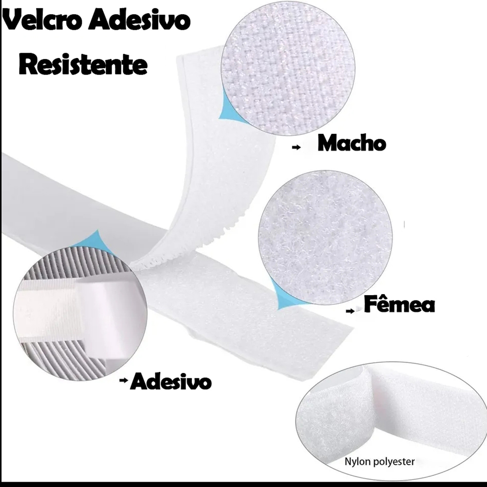 Fecho Contato Auto Adesivo 1,6cm X 50cm Preto Branco Macho e Fêmea Velthor Tela Mosquiteiro