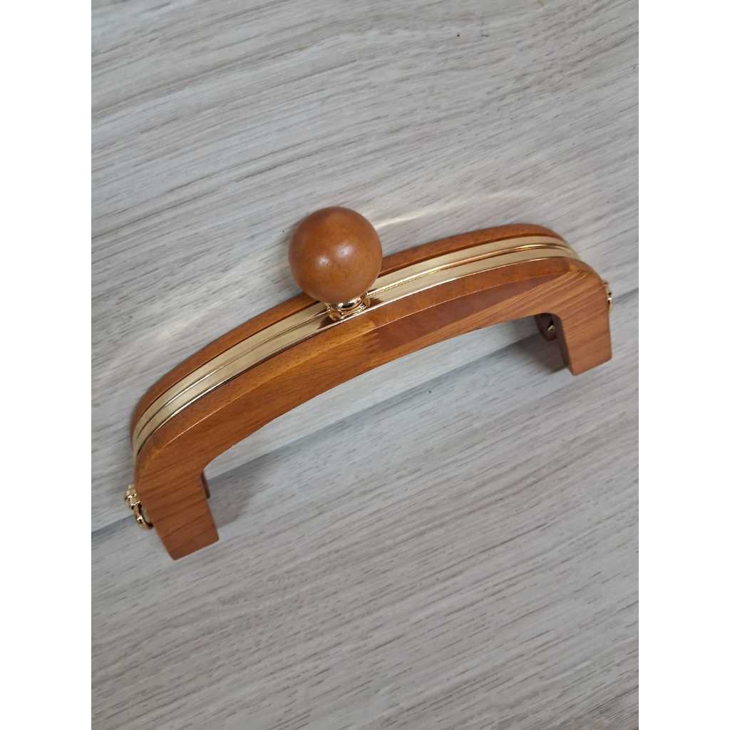 Fecho da vovó de madeira com acabamento em metal dourado com suporte para alça