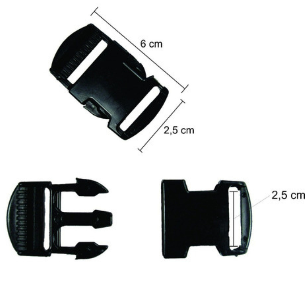 Fecho Engate Rápido 25mm + Regulador Para Mochila Bolsa Coleira Polchete Cráchas | Kit 20 Unidades