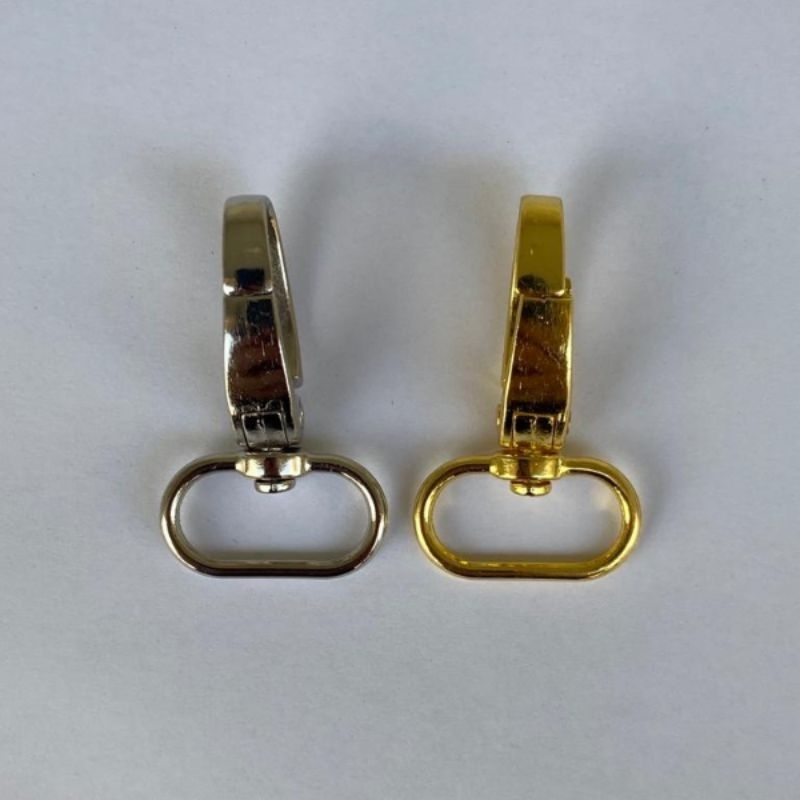 Fecho Mosquetão Reforçado Quantidade: 5, 10 e 25 peças Cor: Níquel / Dourada Material: Zamac Tamanho: 45x25mm Ideal para acessórios, chaveiros, bolsas e etc...