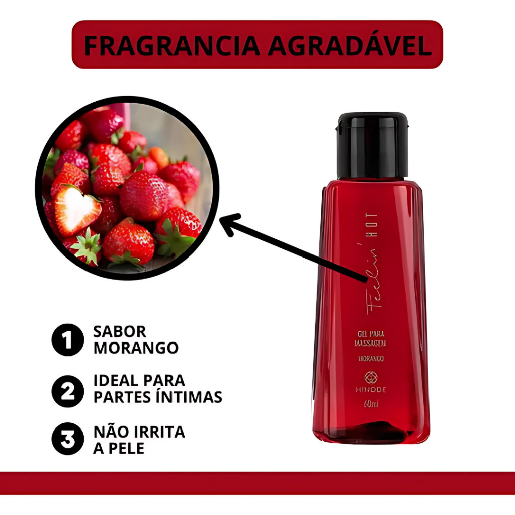 Feelin Hot Morango gel Para Massagem Hinode - 60g