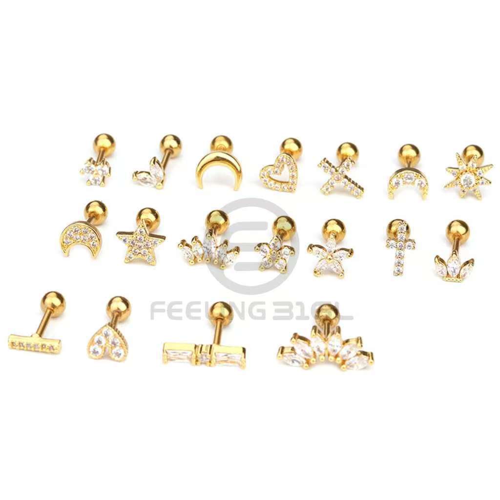 Feeling 316L Kit 5 Peças Piercing Sortidos Para Orelhas / Tragus / Cartilagem / Helix pircing