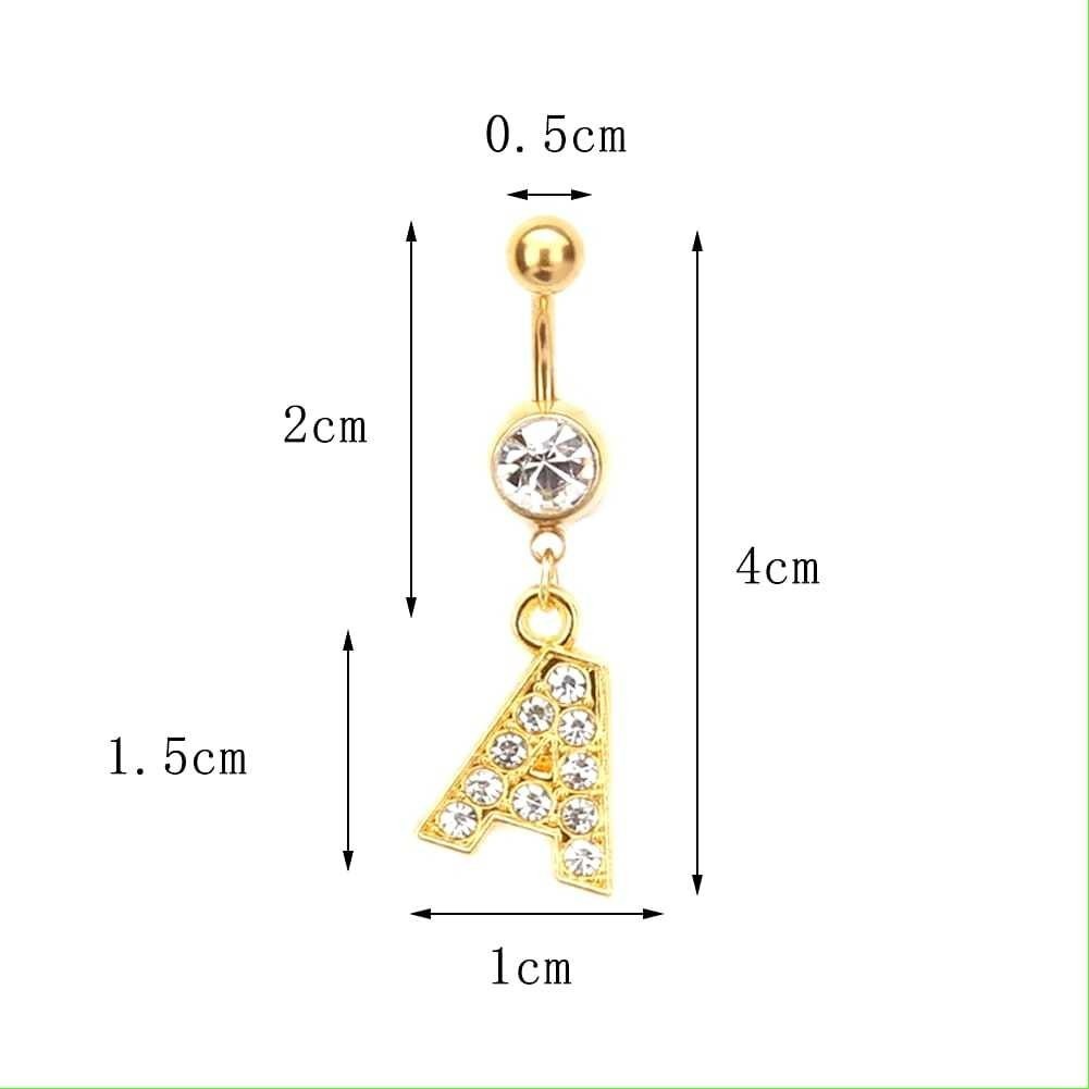 Feeling 316L Piercing de Umbigo Dourado Com Pingente de Letras Iniciais do Nome C/ Cristal Transparente
