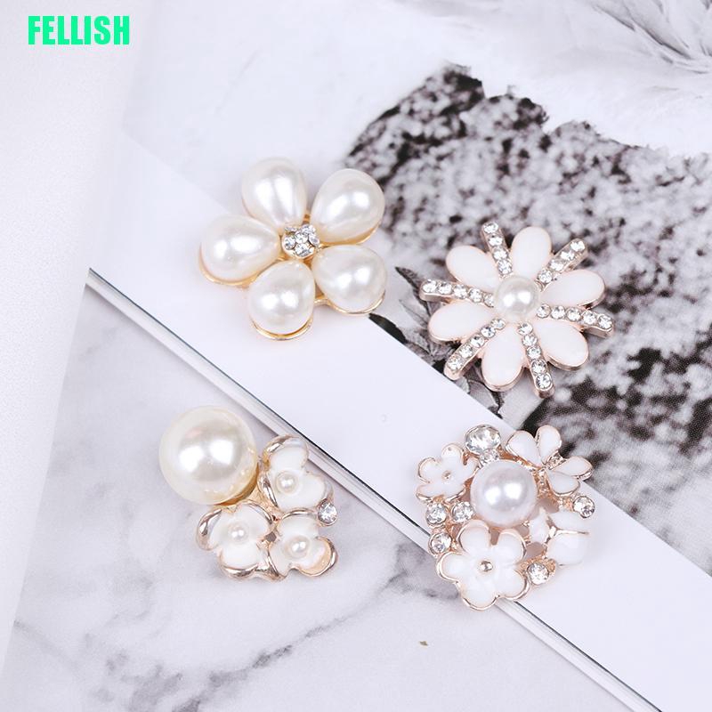 (Fel) 10 Peças Botões De Strass Com Pérolas Para Decoração De Artesanato