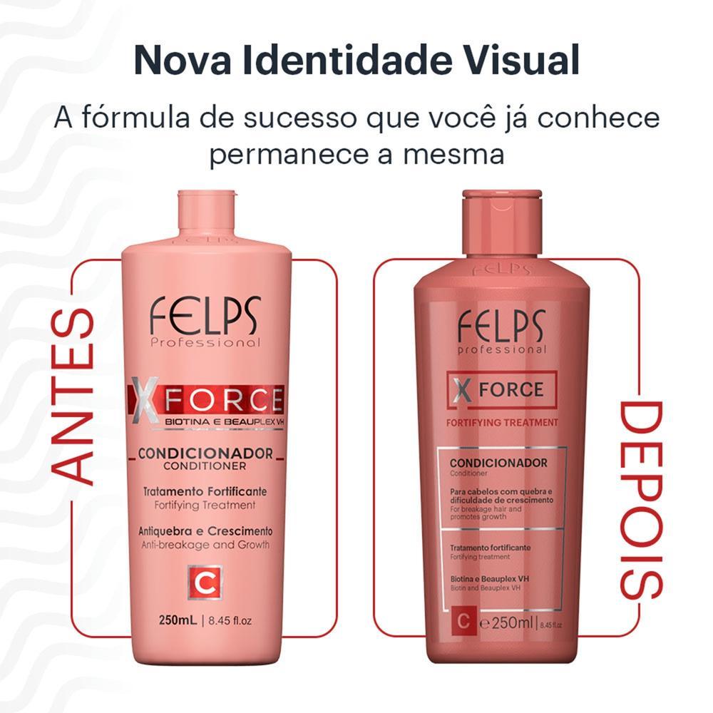 Condicionador para cabelos de todos os tipos. Felps Professional XForce estimula o crescimento dos fios, além de garantir força, brilho e hidratação profunda. O Condicionador Felps Professional XForce conta com fórmula enriquecida com Óleos de Coco e de Rícino, Biotina e um poderoso Blend de Vitaminas. Indicado para os apaixonados por cabelos longos, mas que sofrem com a quebra constante dos fios, o produto - que não é testado em animais - assegura luminosidade, resistência e toque macio. **** IMPORTANTE: Não vendemos para contas CNPJ, evite que seu pedido seja cancelado! ****