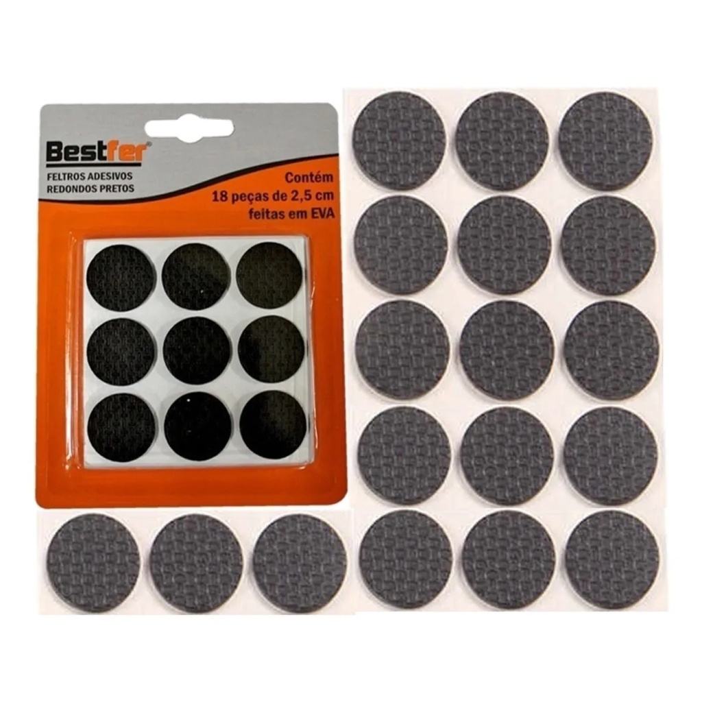 | Feltro Protetor Adesivo EVA Redondo Preto 2,5 Cm 18 Peças este produto | R$ 10,90 | 9% | 4.8/5 | 5 |