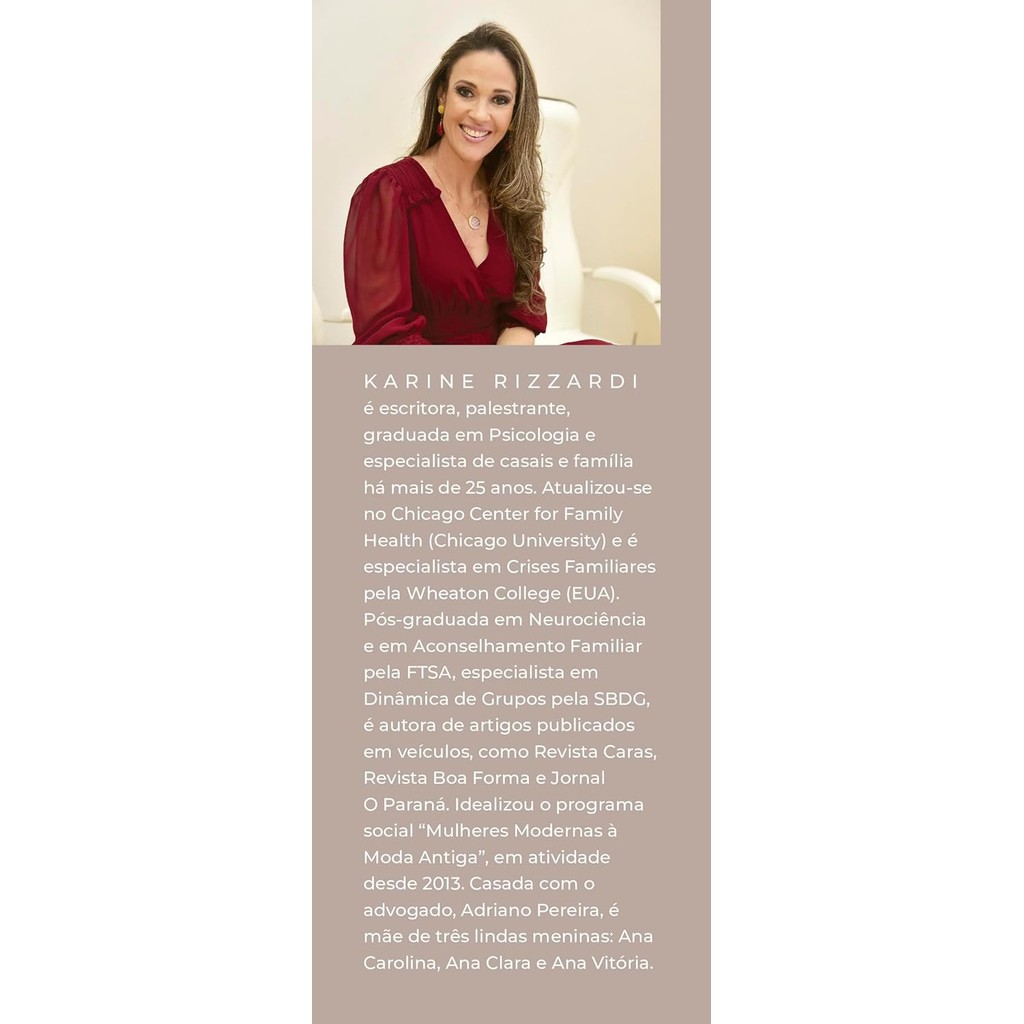 Sem culpa, sem pressa, simplesmente feminina.Ao observar tantas mulheres sobrecarregadas, tentando equilibrar uma rotina exaustiva de trabalho com a plenitude de suas famílias ― provendo amor, cuidado e atenção ―, senti o chamado para fazer algo a respeito. Decidi criar grupos de feminilidade, espaços onde mulheres pudessem vivenciar, juntas, o caminho de volta à suaessência. Um retorno à verdadeira feminilidade, respeitando a singularidade de cada uma ao longo dessa jornada transformadora.Esses grupos me proporcionaram muitas descobertas, que agora compartilho com você nestas páginas. Elas têm uma característica muito especial: são como uma“mãe” que acolhe, compreende e acompanha, mas também sabe corrigir com amor quando necessário. Respeita suas conquistas e seu modo de ser, mas sonha em vê-la transbordando em sua feminilidade.Portanto, eu a convido a embarcar nesta jornada que lhe revelará como a vida pode ser muito mais leve. Seja jovem ou madura, casada ou solteira, do lar ou profissional, algo nos une profundamente ― somos mulheres. 21x16 cm 224 Páginas