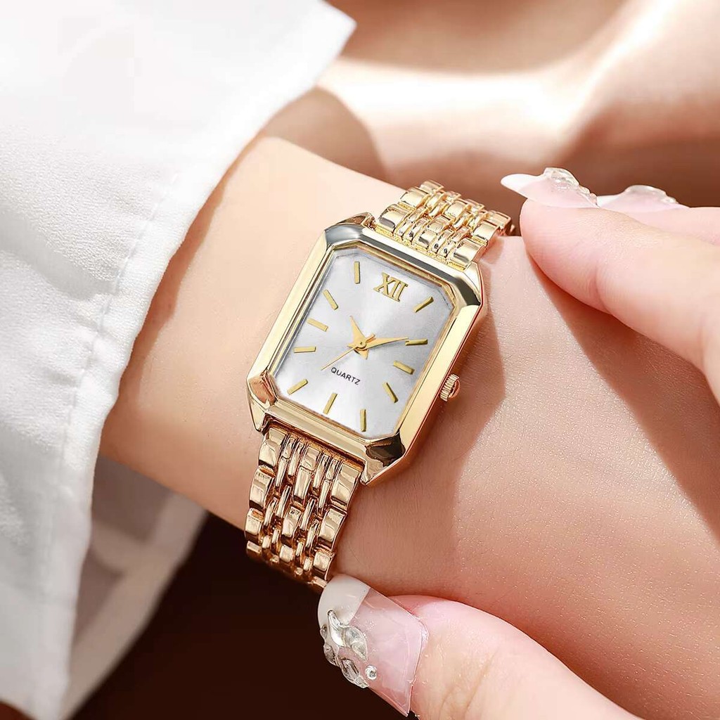 Feminino Elegante Pulseira De Aço Inoxidável Relógio De Quartzo Moda Retângulo Analógico Relógios De Pulso Meninas Prese
