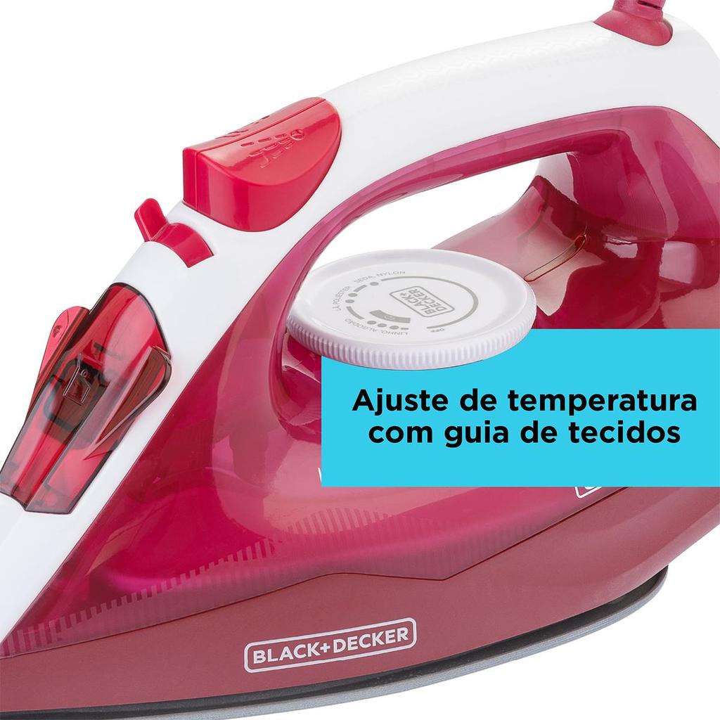Ferro de Passar Roupa a Vapor Black + Decker Antiaderente 1200W 220V Rosa - FX2250-B2