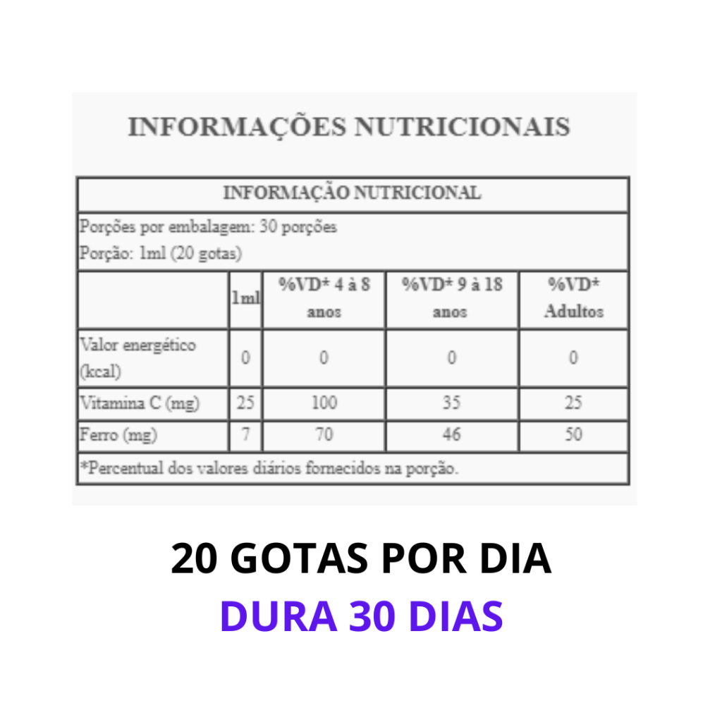 Ferro Quelato Bisglicinato + Vitamina C em gotas, altamente concentrado. Auxilia na formação das células vermelhas do sangue e no sistema imune. Sabor framboesa, fácil de consumir para todas as idades. Ferro Quelato + Vitamina C Gotas – 30ml | Supralab O Ferro Quelato + Vitamina C em gotas Supralab é um suplemento alimentar desenvolvido para auxiliar na reposição e suplementação de ferro, mineral essencial para o bom funcionamento do organismo. O ferro auxilia na formação das células vermelhas do sangue, responsáveis pelo transporte de oxigênio para os tecidos, ajudando a prevenir sintomas como fraqueza, cansaço, tontura, sonolência e palidez. Também auxilia no metabolismo energético, no processo de divisão celular e no funcionamento do sistema imune. A fórmula conta ainda com Vitamina C, que auxilia na absorção do ferro e contribui para o funcionamento adequado do sistema imunológico. ✅ Principais Benefícios Auxilia na formação das células vermelhas do sangue Auxilia no transporte de oxigênio no organismo Auxilia no metabolismo energético Auxilia no funcionamento do sistema imune Alta absorção devido ao ferro quelado Sabor framboesa, suave e agradável 🧪 Composição por Porção Porção: 1ml (20 gotas) Porções por embalagem: 30 porções Ferro: 7mg (equivalente a 50% da ingestão diária recomendada – ANVISA) Vitamina C: 25mg 📊 Informação Nutricional Valor energético: 0 kcal Vitamina C: 25mg Ferro: 7mg * Percentual de valores diários fornecidos pela porção. 🧾 Ingredientes Água potável, bisglicinato ferroso, vitamina C (ascorbato de sódio), aroma idêntico ao natural de framboesa, óleo essencial de menta, sorbitol, ácido cítrico, sorbato de potássio, benzoato de sódio e glicosídeos de esteviol (stévia). ✔ NÃO CONTÉM GLÚTEN 📦 Conteúdo da Embalagem 1 frasco de Ferro Quelato + Vitamina C em gotas – 30ml ⚠️ Observações Importantes Este produto é um suplemento alimentar e não substitui uma alimentação equilibrada. Sempre consulte um profissional de saúde antes de iniciar o uso.
