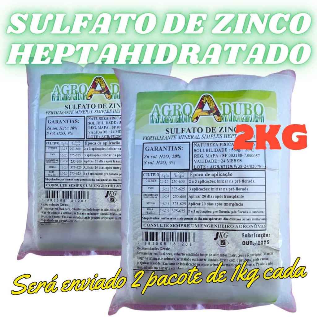| Fertilizante 2kg Sulfato de Zinco 20%Zn; 10%S Soluvel em Agua este produto | R$ 31,90 | — | 4.9/5 | 6 |