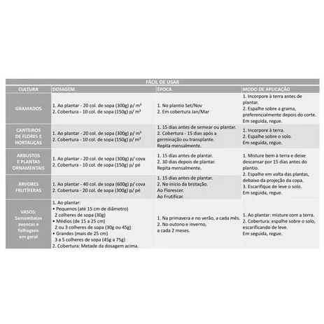 Tabela rápida para você comparar este item com outros similares de Fertilizantes dentro do nosso catálogo.