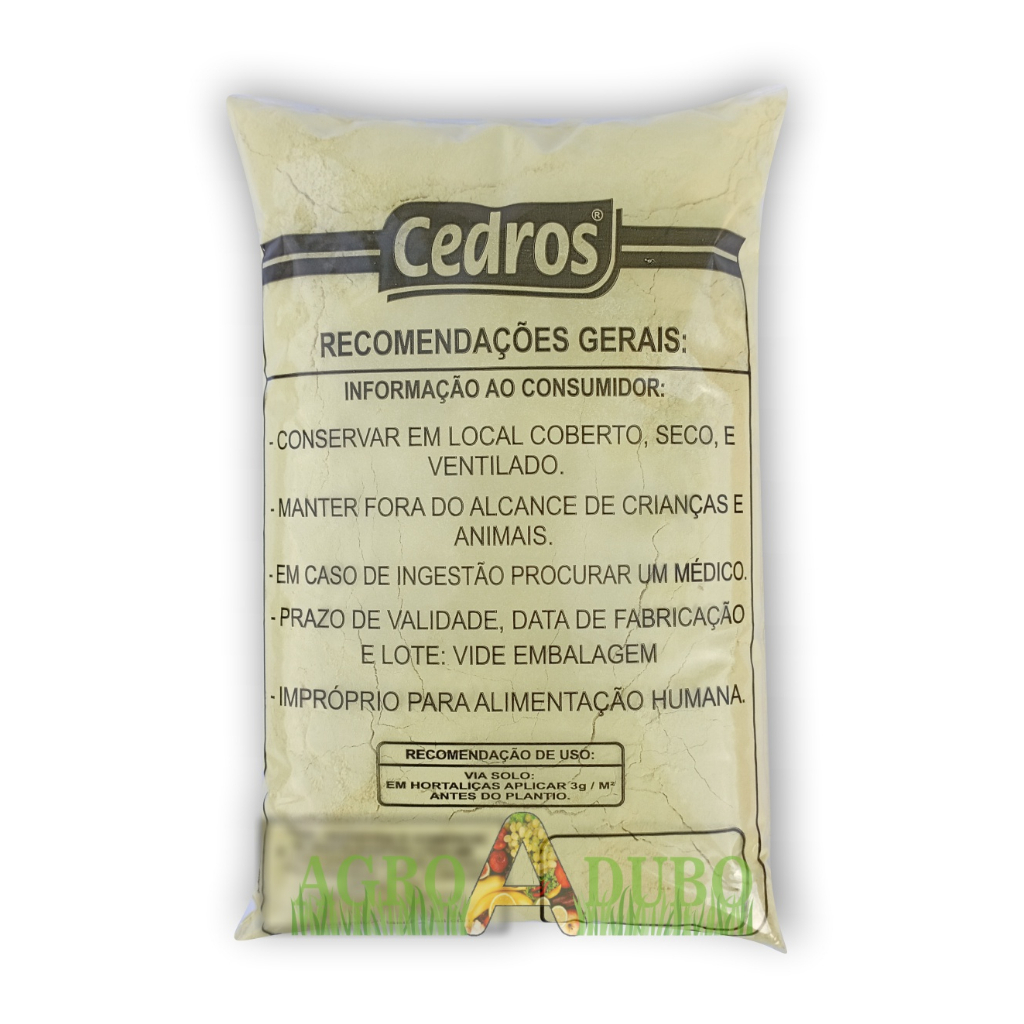 ENXOFRE PURO PÓ GARANTIAS: ENXOFRE (S) 96% 1 PACOTE DE 1KG REGISTRO MAPA SP 80825-10017-6 A importância do enxofre para as plantas Esse nutriente é classificado como um macronutriente para as plantas e, além de ser necessário para que as mesmas completem seu ciclo de vida, é necessário em abundância. Em algumas culturas, a exigência de enxofre pode ser maior que o fósforo (P), como é o caso do rabanete, cebola, pimenta, algodão, feijão, soja entre outras. O enxofre também está associado a características relacionas a qualidade dos alimentos como o odor e o sabor. Está presente em compostos voláteis que contribuem para o odor característico culturas, como o alho, cebola, mostarda, abacaxi entre outras. Função e deficiência do enxofre em plantas O enxofre é fundamental para as plantas, pois é um nutriente que desempenha papel estrutural em diversas moléculas importantes do metabolismo. A exemplo de moléculas do grupo dos aminoácidos como a metionina, cisteína e cistina, as quais são necessárias para a formação de proteínas. Além disso, desempenham um papel estrutural em moléculas como os lipídios, polissacarídeos, flavonoides, alcaloides entre outros. E também sendo os flavonoides e os alcaloides representantes de moléculas ligadas ao metabolismo secundário das plantas. Os metabolitos secundários das plantas vão desempenhar funções diversas desde a pigmentação, odor até mesmo de defesa ao ataque de pragas e doenças. Mais um ponto que demostra a importância de ser ter plantas bem nutridas para evitar ou combater a ocorrência de pragas e doenças. Além de seu caráter estrutural o enxofre pode desempenhar papel de coenzima e assim atuando na regulação da atividade de enzimas. Os sintomas da deficiência de enxofre se assemelham aos da deficiência de nitrogênio. Devido à clorose generalizada que pode ocorrer em casos mais graves de falta de enxofre. A diferença está nas folhas em que ocorrem inicialmente os sintomas de deficiência. No caso do enxofre, será nas folhas mais novas devido a sua pouca mobilidade na planta. Dependendo da cultura, os sintomas de deficiência de enxofre nas plantas se manifestam na forma de: Tons arroxeados a avermelhados nos órgãos vegetativos mais jovens; Redução do tamanho das folhas e enrolamento das margens; Produtos agrícolas com proteína de baixo valor biológico; Atraso na maturação das sementes e dos frutos; Menor nodulação em leguminosas; Encurtamento dos internódios; Redução do florescimento. Por fim, ele também pode ser aplicado via foliar nas formas de sulfato e enxofre elementar com uma absorção de 50% do enxofre por volta de 5 a 10 dias dependendo da cultura. Também saber que na maioria das vezes a aplicação de fertilizantes contendo enxofre implica na acidificação do solo é muito importante para se fazer um bom manejo de adubação. Algo que pode ser feito de maneira intencional no controle da doença sarna da babata, uma vez que seu agente causal desenvolve semal sob condições de pH mais ácidos. Assim, para a construção de um bom plano manejo de adubação de enxofre, não deixe de consultar um engenheiro agrônomo. Esse profissional também pode te ajudar a sanar dúvidas como: qual fonte enxofre usar? Como diluir o enxofre para plantas? Ou quando deve ser aplicado o enxofre nas plantas? Consulte sempre um engenheiro agrônomo.