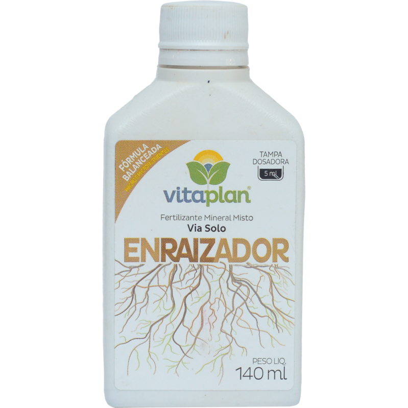 Fertilizante Plantas e Folhagens (Nutriverde) + Enraizador 140ml VITAPLAN Descrição - Fertilizante Mineral Misto NutriVerde (140ml) VITAPLAN * É um fertilizante que contém proporção equilibrada de Nitrogênio, Fósforo e Potássio. * Aplicado nas folhas ou nas raízes, repõe rapidamente os nutrientes que a planta necessita naquele momento mantendo-as saudáveis por muito mais tempo. * Fertilizante líquido, prático e de fácil aplicação. Características * Tipo do produto: Líquido Concentrado * Composição: Nitrogênio (N) Solúvel em Água.................................................06 p/p (4,8 p/v) * Fósforo (P2O2) Solúvel em Água..............................................06 p/p (4,8 p/v) * Óxido de Potássio (K2O) Solúvel em Água............................08 p/p (6,4 p/v) * Densidade.......................................................................................1,25 * Natureza Física..............................................................................Suspensão Homogênea * Fórmula: 06-06-08 * Material: Mineral Misto * Embalagem do produto:140ml * Tampa dosadora 5ml * Precisa ser diluído para só então ser aplicados nas folhas ou solo. * Registro: M.A.P.A PR-08168 10015-6 Descrição - Fertilizante Enraizador 140ml VITAPLAN * Sua formulação balanceada com macro e micronutrientes contém também a mais nova descoberta da jardinagem: o extrato de algas marinhas. * Ideal para implantação de jardins, produção de mudas, estaquia, alporquia, divisão de touceiras, transplantes de plantas.* Para qualquer cultivo que se necessite favorecer a formação de raízes. * Essa combinação produz um amplo efeito estimulante que se expressa em melhor qualidade de frutos. Características* NPK: 02-08-06 + Extrato de Algas Marinhas e Micronutrientes * Matéria prima: extrato de algas marinhas, uréia, ac fosfórico, cloreto de potássio, cloreto de cálcio, sulfato de magnésio, sulfato de cobre. * Modo de aplicação: Via solo * Natureza Física····························································· Fluido * Peso Líquido: Frasco de 140ml * Registro: M.A.P.A PR-08168 10045-8