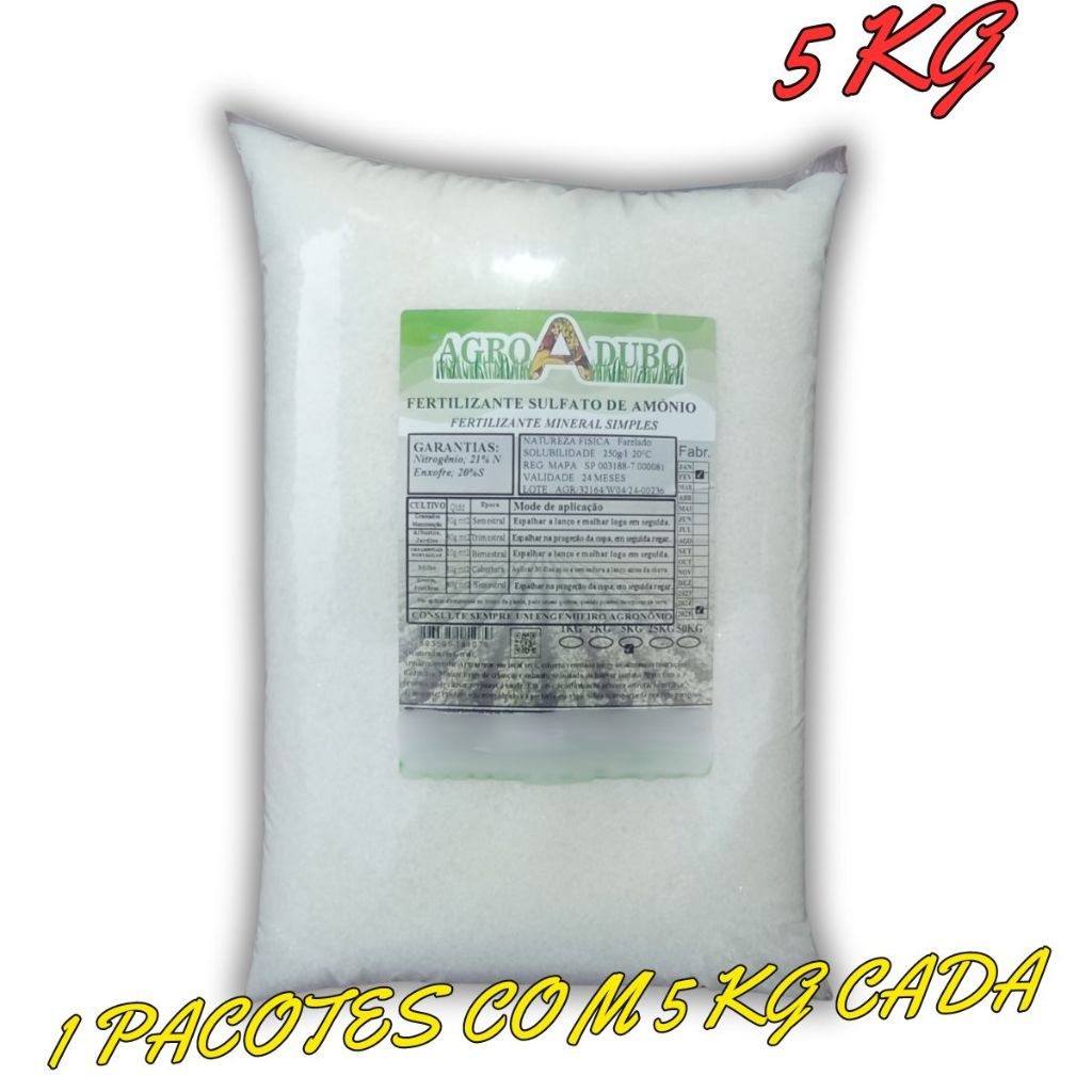 Catalogado na subcategoria Fertilizantes (de Casa e Construção), Fertilizante Sulfato De Amônio 5Kg Adubo 100% Soluvel está à venda na Shopee Brasil por R$ 47,90. Nota 5.0 de 5 na Shopee e 9 unidades vendidas, este produto se destaca pelo excelente custo-benefício.