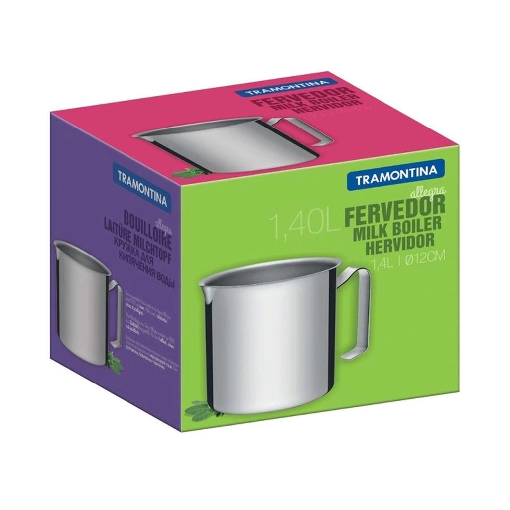 Fervedor 1,4L Tramontina Allegra em Aço Inox 12cm Caneco Leiteira Cozinha Design Clean Alto Brilho