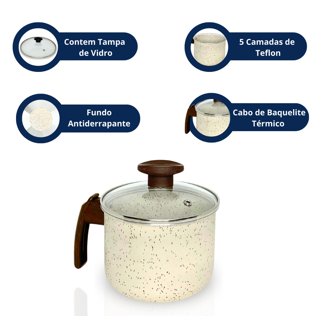 Fervedor Canecão Leiteira Antiaderente Com Tampa De Vidro 14cm 1,6L Reforçado Premium Cozinha