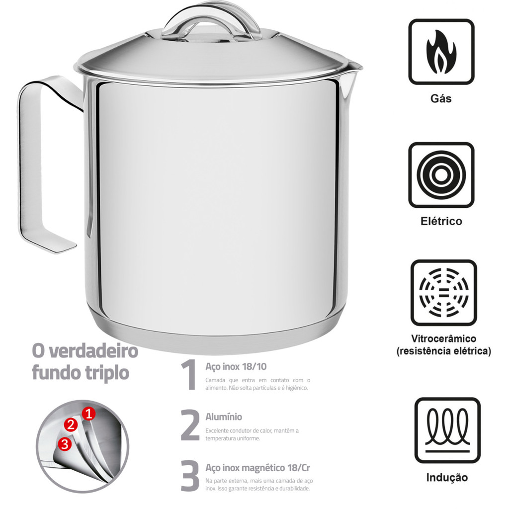 | Fervedor Tramontina Inox C/ Tampa Fundo Triplo Solar 14cm 2L este produto | R$ 265,34 | 6% | 5.0/5 | 6 |