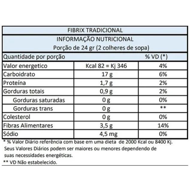 KIT COM 6 POTES DE 200GR CADA Fibrix Regulador Intestinal é uma Mistura a base de Farelos com alto teor de Fibras que resolve com eficiência problemas com o trânsito intestinal e assim eliminando a prisão de ventre e diminuindo o inchaço do abdômen causado pela falta de evacuação. Com seu intestino funcionando como um reloginho você ganha uma pele mais bonita, melhora o humor e resolve muitos problemas de saúde pois a maioria das vitaminas e minerais são absorvidas no intestino delgado e grosso, FIBRIX também aumenta a saciedade por mais tempo auxiliando muito na perda de peso. Sugestão de uso : dissolva duas colheres de sopa de FIBRIX na água, leite, iogurte ou em seu suco natural preferido misture bem e tome como ultima refeição a noite . Benefícios do Fibrix: Fonte de alto teor de Fibras Gordura Trans 0% Não Contém Açúcar 0% de Lactose Contém Glúten PRODUTO VEGANO ATENÇÃO ALERGICOS : PODE HAVER RESQUICIOS OU TRAÇOS DE GLUTÉN DEVIDO SUAS FARINHAS SEREM PROCESSADAS EM AMBIENTE COM OUTRAS QUE POSSUEM GLUTÉN . Ingredientes: Farinha de Maracujá, Farinha de Uva, Farinha de Banana Verde, Farinha de Aveia, Farinha de Berinjela, Farinha de Linhaça Dourada, Tamarindo ,extrato seco de Psyllium, extrato de soja, e amido de milho.