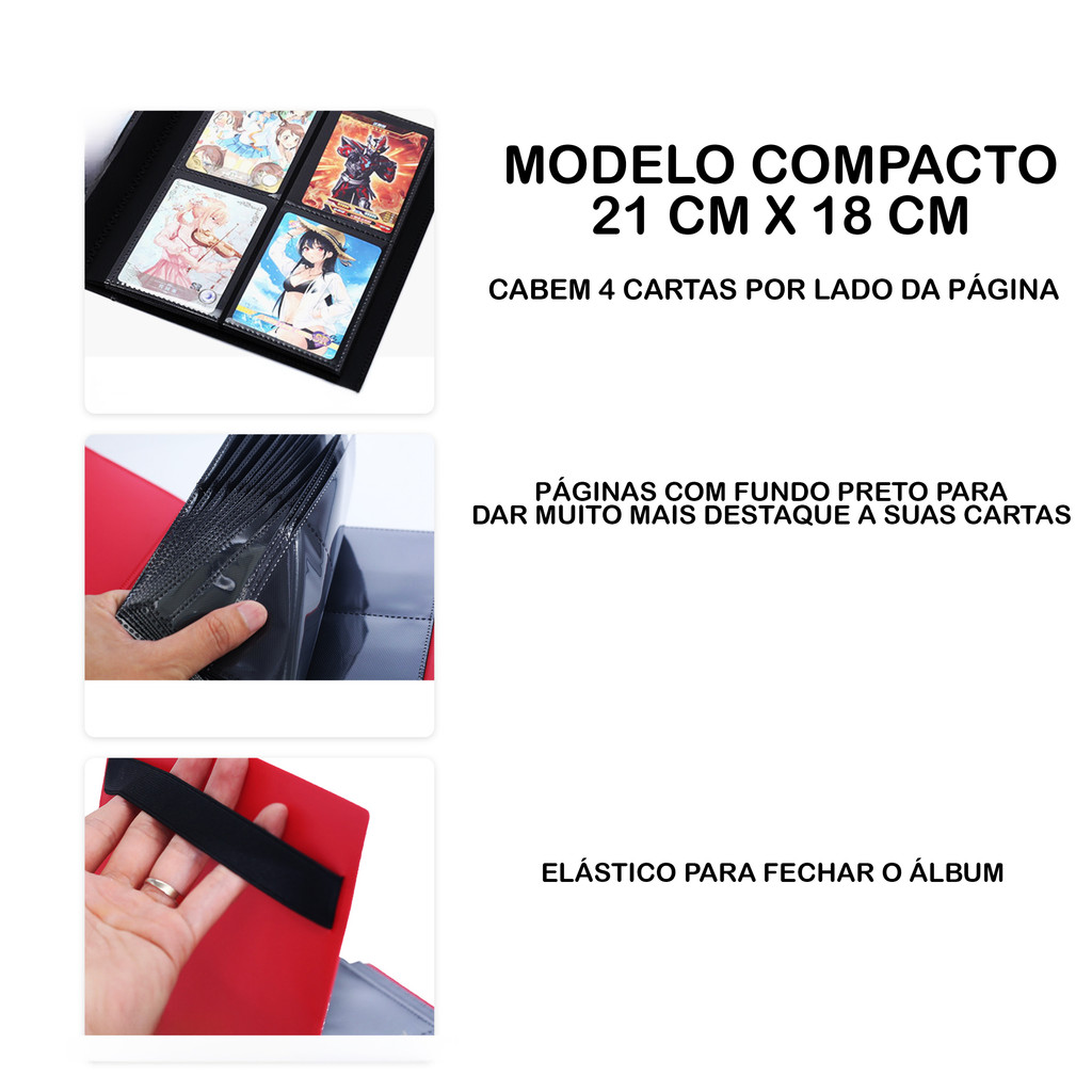 Fichário Álbum para cartas Pokemon magic yugioh inclui 20 plásticos cabem 160 cartas