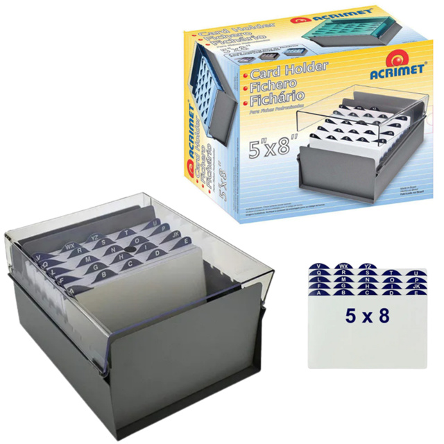 Fichário de Mesa Acrimet 5x8 com Índice A-Z Organizador de Fichas Padronizadas Escritório e Arquivo