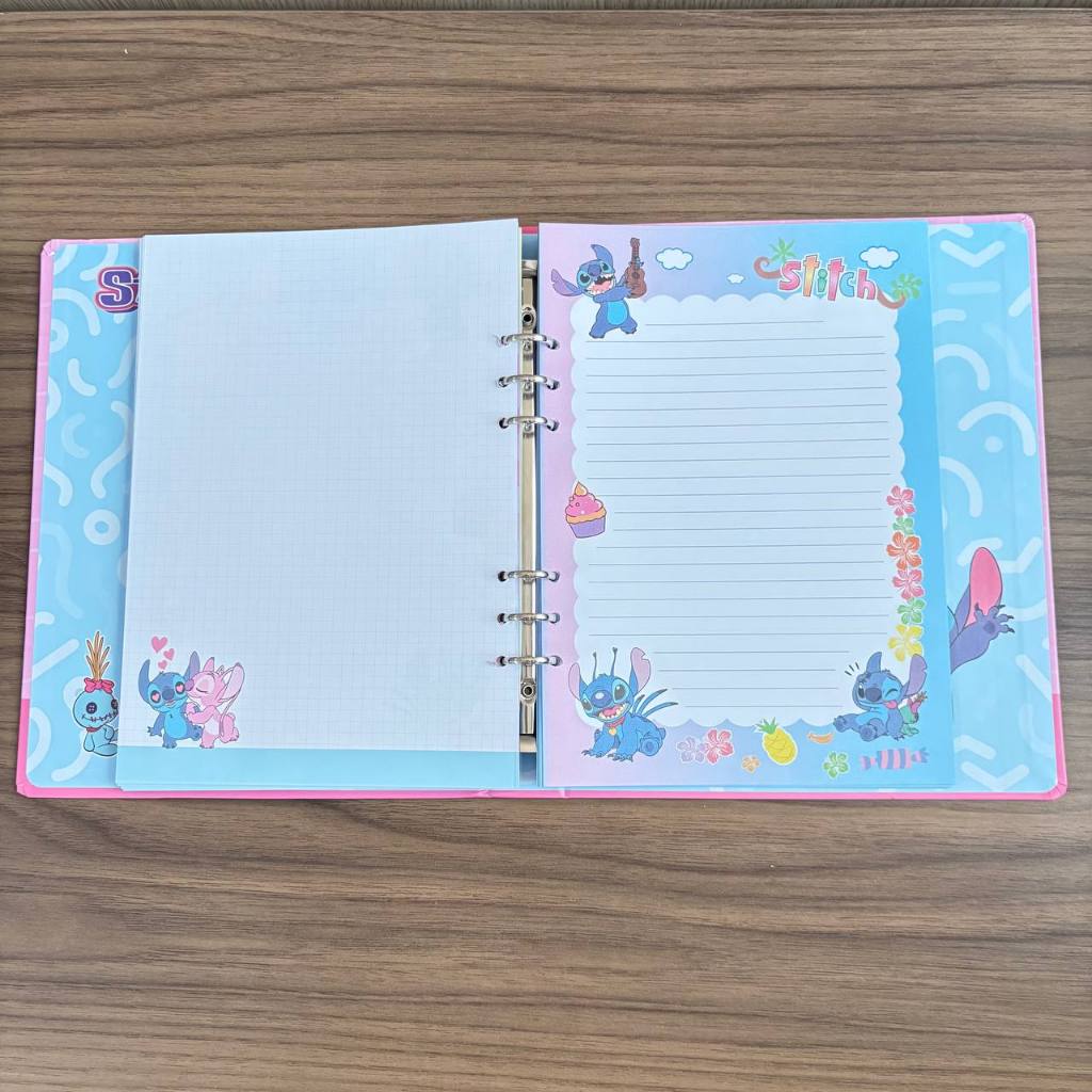 🩵 FICHÁRIO STITCH - TAMANHO COLEGIAL 27x22cm 🩷 ✨ Perfeito para quem ama organização com estilo e fofura! Esse fichário do Stitch vai deixar seus estudos muito mais divertidos e coloridos. Ideal para escola, faculdade ou até para anotações do dia a dia. 📘 Detalhes do produto: Tamanho: 27x22cm (formato colegial) 72 folhas pautadas de excelente qualidade Capa dura com estampas exclusivas do Stitch Miolo decorado e divisórias internas Sistema de argolas metálicas reforçadas Fechamento seguro e prático 💖 Perfeito para: estudantes, fãs da Disney, e quem adora papéis fofos e organizados! 🎁 Dica: combine com outros produtos da linha Stitch — cadernos, planners e canetas. 📦 Disponível por tempo limitado!