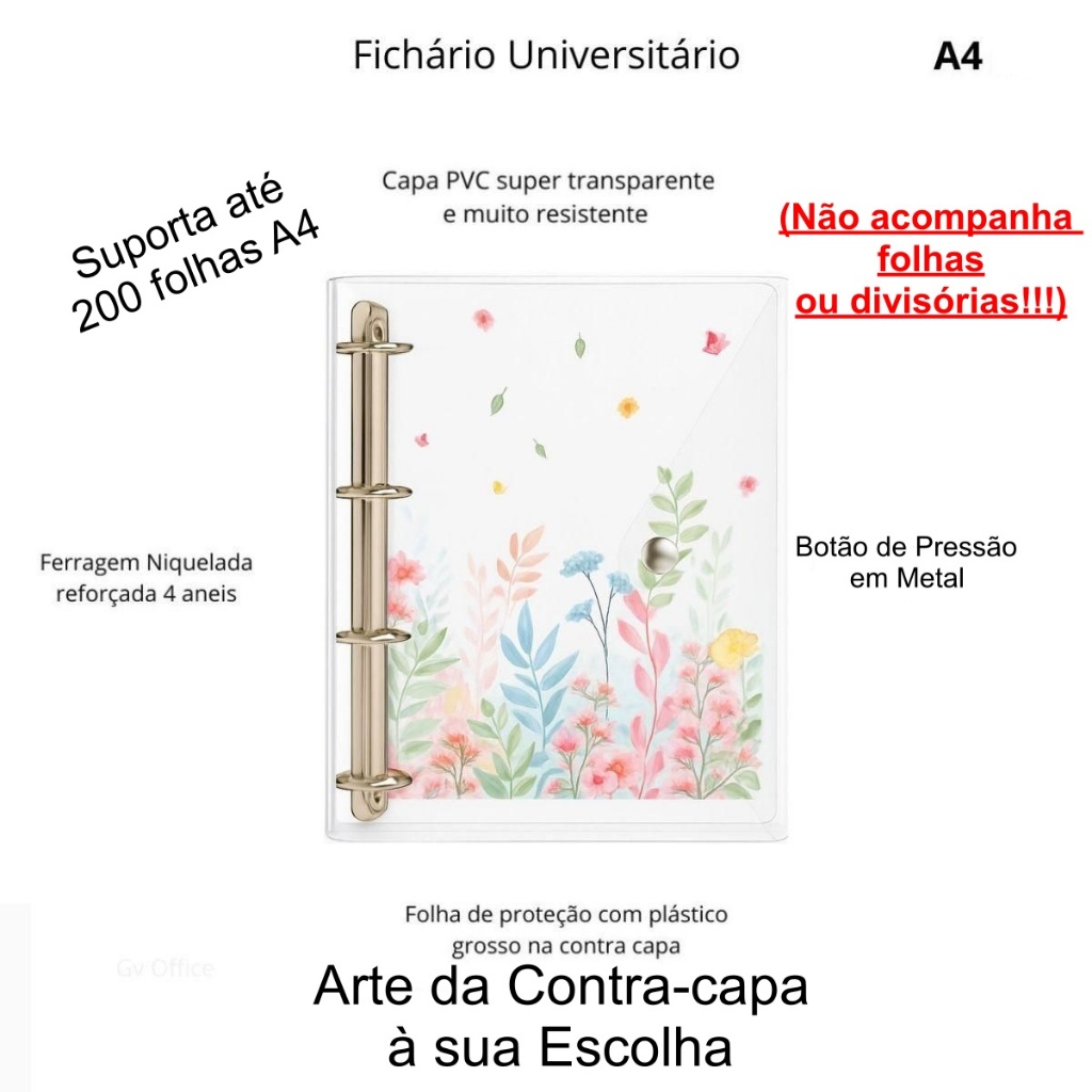 | Fichário Universitário A4 Escolha sua Capa Gatos Transparente este produto | R$ 49,99 | — | 4.8/5 | 4 |