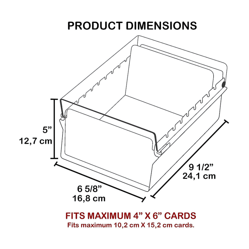 Fichários Para Fichas Padronizadas 4X6 C/ Índice A-Z Fichário com corpo em aço na cor grafite, com tampa em poliestireno na cor Fumê, Cristal , Azul Clear ou Verde Clear. Base Antiderrapante. Possui capacidade para até 500 fichas tamanho 4´´x 6´´. Contém divisória de plástico para auxiliar no equilíbrio dos cartões no fichário. Acompanha índice A-Z. DIMENSÕES APROXIMADAS DO PRODUTO: 24CM X 13CM X 18CM (C X A X L) Ref. 922.0