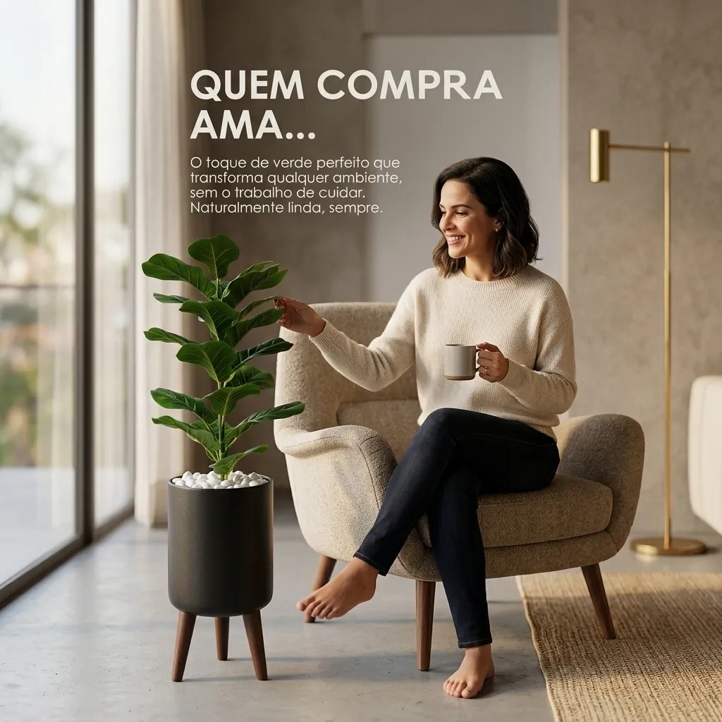 Transforme instantaneamente qualquer ambiente da sua casa ou escritório com a nossa Planta Tropical Premium. Criada para os amantes da estética e do bom gosto, esta peça une a beleza orgânica da natureza com a praticidade da vida moderna. Por que escolher esta planta? Hiper-Realismo (Tecnologia Real Touch): Diferente das plantas artificiais comuns, nossa folhagem possui texturas detalhadas, veios aparentes e variação de tons verdes que imitam a natureza com perfeição. Seus convidados precisarão tocar para acreditar que não é natural. Design Completo (Vaso Incluso): Chega de procurar o vaso perfeito. Ela já vem montada em um elegante vaso preto cilindrico liso moderno, pronto para decorar. Beleza Eterna: Nunca perde a cor, nunca morre e nunca precisa de água. A solução definitiva para salas com ar condicionado, cantos sem luz solar ou para quem tem uma rotina agitada. Versatilidade Decorativa: O design neutro e sofisticado se adapta a decorações Minimalistas, Industriais, Clássicas ou Boho. Onde usar sua nova planta: Sala de Estar: Ao lado do sofá ou rack para preencher o espaço vertical com elegância. Hall de Entrada: Crie uma primeira impressão inesquecível e acolhedora. Home Office & Consultórios: Adicione vida e reduza o estresse visual do ambiente de trabalho sem se preocupar com regas no fim de semana. Cantos "Mortos": Ideal para aquele canto do corredor onde plantas naturais não sobrevivem por falta de luz. Ficha Técnica (Especificações) Altura Total: 100 cm Planta: 60 cm Vaso: 40 cm Material da Folhagem: Seda/Plástico (Toque suave e realista) Material do Vaso: Plástico Cor do Vaso: Preto Estilo: Tropical, Contemporâneo, Minimalista. Manutenção: Limpeza simples com pano seco ou espanador. "Não espere para ter a casa dos seus sonhos. Adicione o toque de verde que faltava na sua decoração hoje mesmo. Estoque limitado para este modelo exclusivo." Garantia do vendedor: 30 dias