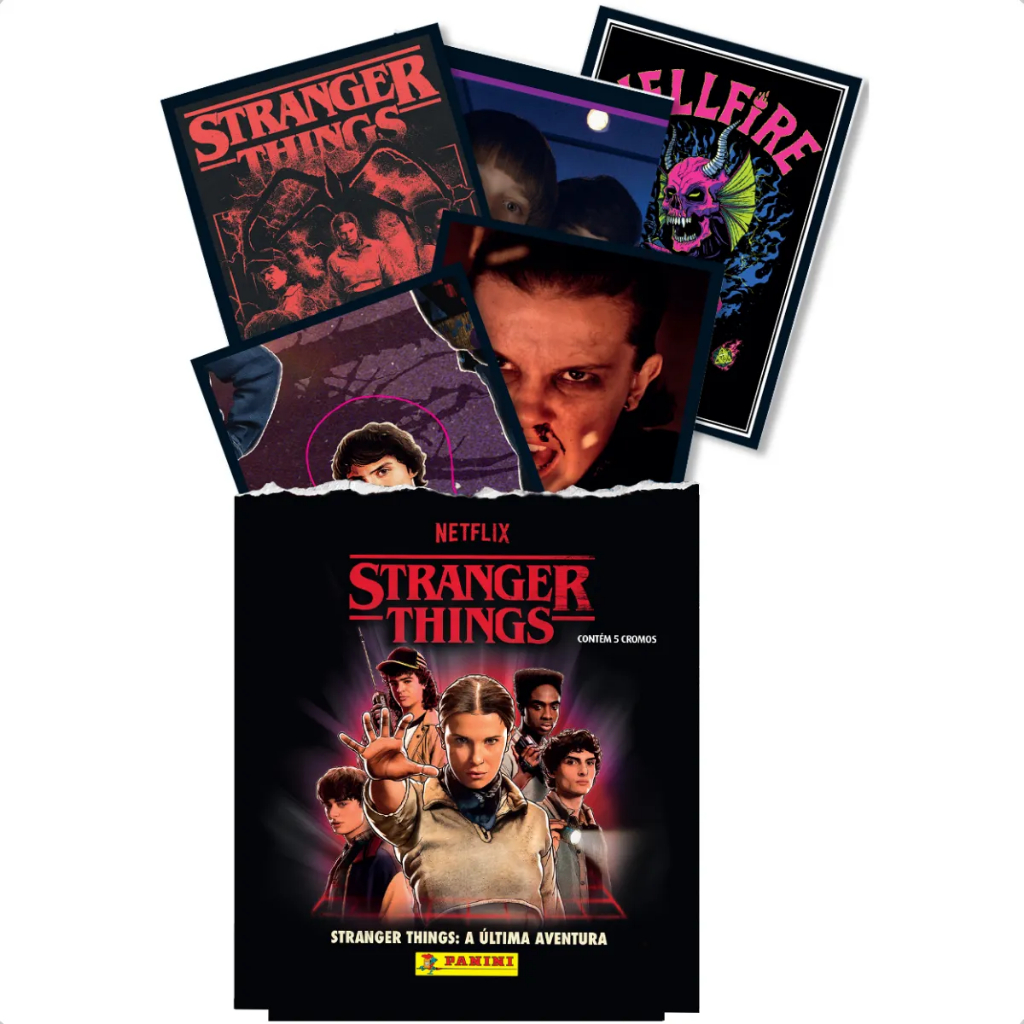 Eleven e seus amigos estão de volta a Hawkins para enfrentar, mais uma vez, a ameaça do Demogorgon. Neste álbum de 48 páginas, acompanhado de um pôster especial, você poderá reviver cada momento dessa incrível jornada. Relembre os passos mais marcantes da saga enquanto aguarda o desfecho mais esperado do ano! Colecione os 200 cromos, incluindo versões metalizadas e até cromos que brilham no escuro, perfeitos para nenhum membro do Hellfire Club botar defeito.