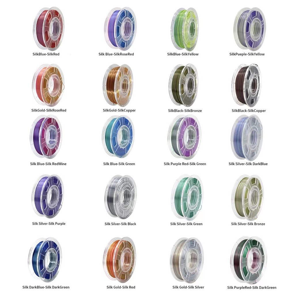 Filamento PLA V-Silk Dupla Cor de 1Kg, diâmetro 1,75mm.Material de alta velocidade, fácil de imprimir, com acabamento brilhante tipo seda.Ideal para impressoras 3D FDM, trazendo efeito visual diferenciado com transição de duas cores no mesmo rolo.