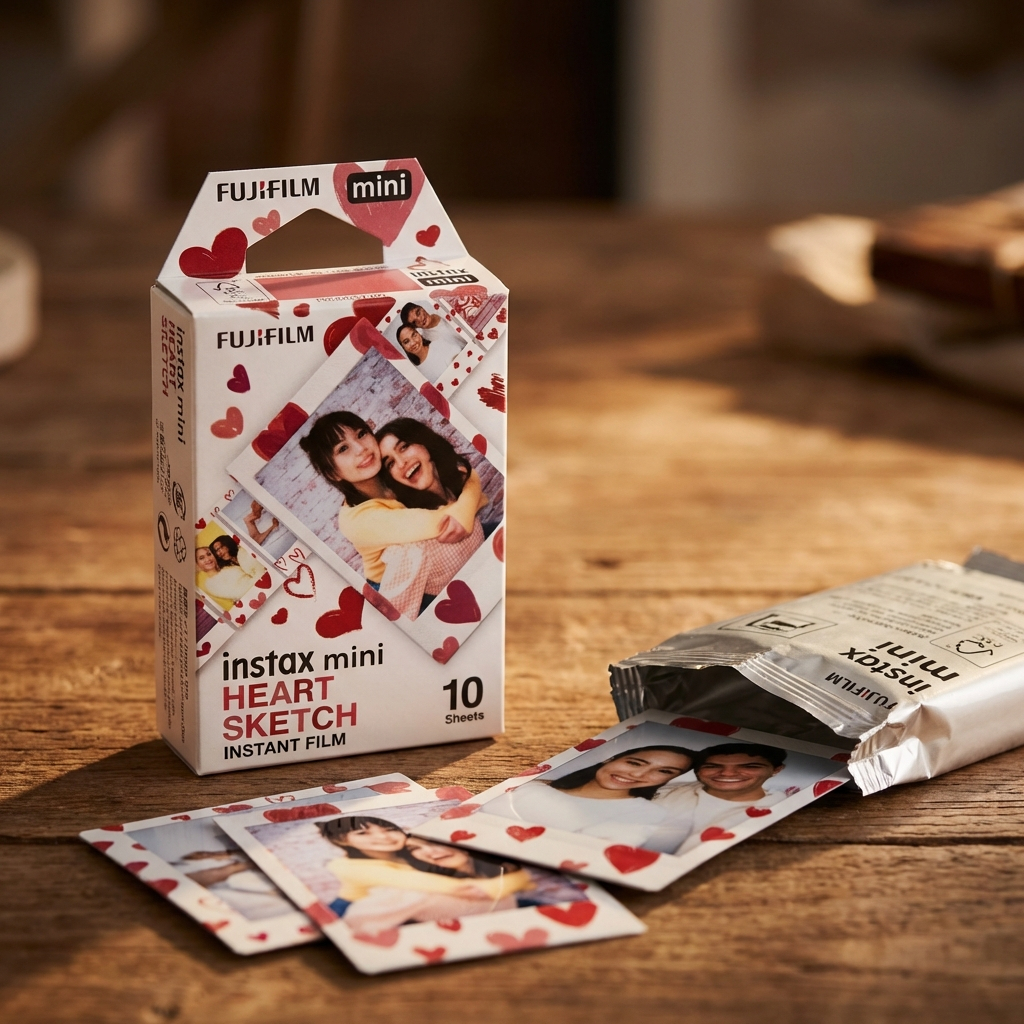 A família Instax cresceu! Conheça o Filme Instantâneo Instax Mini Heart Sketch, perfeito para deixar suas fotos ainda mais fofas, criativas e cheias de amor! Com excelente qualidade de imagem, o filme Instax Mini Heart Sketch garante fotos nítidas, cores vibrantes e tons de pele naturais. Compatível com todas as câmeras Instax Mini e com as impressoras Instax Mini Link e Instax Share, ele permite imprimir seus momentos favoritos em qualquer lugar, com muita praticidade. O grande destaque fica por conta da borda estampada com delicados corações, que transforma cada foto em uma lembrança ainda mais divertida e especial. CARACTERÍSTICAS • Filme instantâneo com revelação imediata • ISO 800: alta sensibilidade, excelente definição e cores vivas • Borda decorada com estampa de corações • Revela automaticamente após o clique DIMENSÕES • Tamanho do filme: 54 x 86 mm • Tamanho da imagem: 46 x 62 mm • Formato cartão de crédito: fácil de carregar na bolsa ou carteira COMPATIBILIDADE • Câmeras Instax formato Mini • Impressoras Instax Mini Link e Instax Share OUTRAS VANTAGENS • Alta estabilidade: funciona em temperaturas de 5°C a 40°C • Cartucho prático e fácil de carregar • O cartucho rende 10 fotos instantâneas CONTEÚDO DA EMBALAGEM • 1 pacote com 10 poses ESPECIFICAÇÕES TÉCNICAS • Cor da borda: Estampada com corações • Quantidade de fotos: 10 • Categoria: Filme Instantâneo • Garantia: 3 meses Obs.: Não submeter o filme a raio X de bagagem. Garantia de fábrica: 90 dias