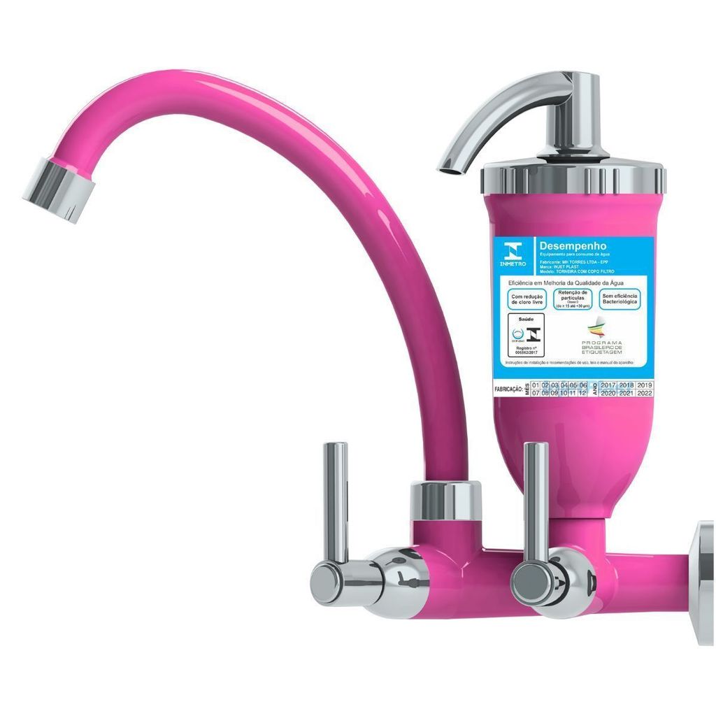 TORNEIRA COM FILTRO 2167 C70 ROSA + 2 VELAS ATENÇÃO: - O modelo acompanha uma vela JÁ INSTALADA e OUTRAS 2 ADICIONAIS; - É recomendado realizar a troca do filtro a cada seis meses. Produzida em ABS de alta resistência e equipada com filtro integrado, esta torneira oferece qualidade, durabilidade e um toque de elegância. O destaque fica por conta do Filtro Pró Saúde, que retém impurezas e odores, garantindo água filtrada e promovendo mais bem-estar para sua família. O mecanismo de 1/4 de volta evita desperdícios e proporciona praticidade no uso. Por ser instalada na parede, adapta-se facilmente a diferentes modelos de cuba. Ficha Técnica: PRODUTO: Torneira de Parede com Filtro 1/4 de Volta Modelo 2167 C70 Local Indicado: Cozinhas COR: Rosa TIPO DE INSTALAÇÃO: Parede MECANISMO: 1/4 de volta FILTRO: Sim, acompanha 1 vela Pró Saúde instalada e 2 adicionais. BITOLA: 1/2" PRESSÃO DE FUNCIONAMENTO: Até 40 mca LIMPEZA: Pano úmido com sabão neutro.