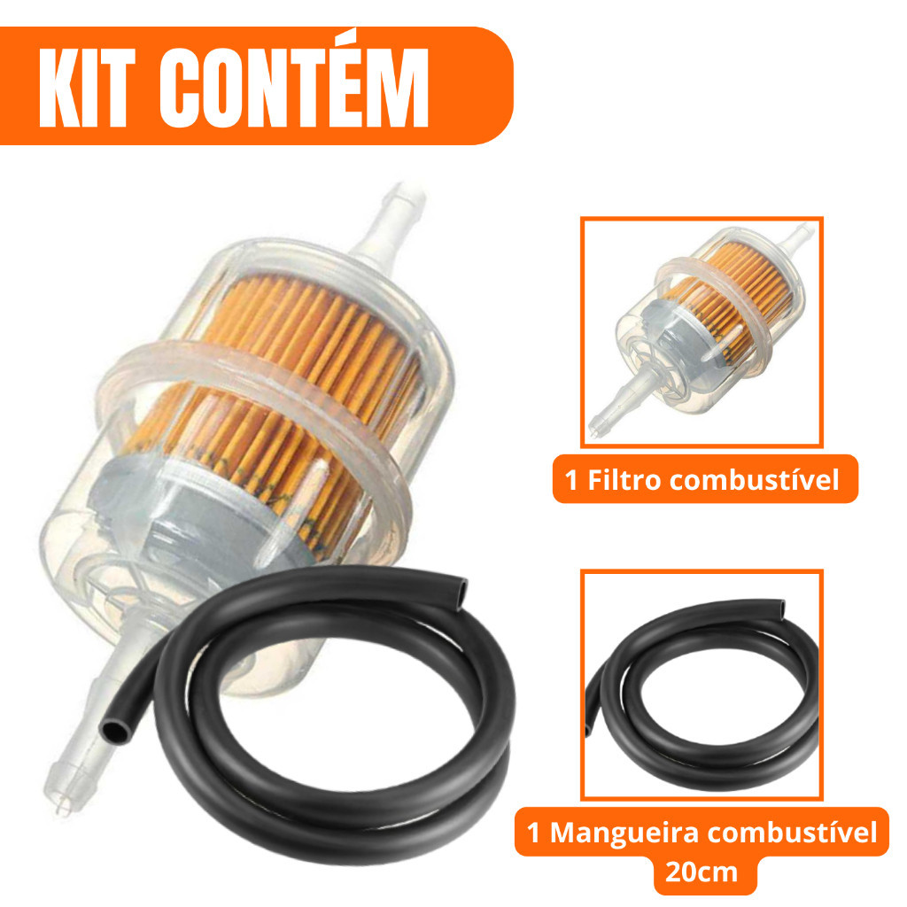 Filtro Combustível Gasolina Motos Carburadas + Mangueira Universal Cg Titan Fan 125 150 Ybr Factor