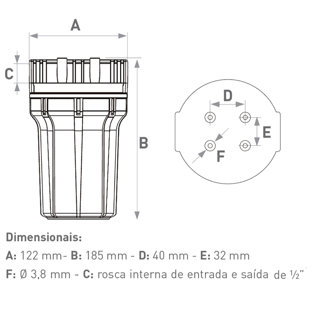 Qualidade superior em filtragem, diretamente da Casa e Garagem Experimente a excelência em purificação de água com o Filtro de Água Hidrofiltros Clor 5", uma escolha ideal para quem valoriza saúde e sabor em cada gota. Na Casa e Garagem, priorizamos produtos que melhorem sua qualidade de vida. O Filtro de Água Hidrofiltros Clor 5" é mais do que um simples acessório; é um investimento em saúde e bem-estar. Vantagens: Qualidade da Água: Oferece uma filtragem superior, ideal para uso doméstico diário e preparação de alimentos e bebidas. Praticidade: Fácil de instalar e manter, economizando tempo e esforço no dia a dia. Economia: Reduz custos associados ao consumo de água engarrafada, promovendo sustentabilidade. Saúde e Segurança: Remove eficazmente contaminantes comuns encontrados na água potável. Aplicações Diversas: Perfeito para bebedouros, máquinas de gelo, lavar o cabelo, entre outros usos. Dados Técnicos: Temperatura de operação: 5°C mín / 50ºC máx Pressão de operação: 19,6 kPa mín. /392 kPa máx. Dimensionais: A: 122 mm- B: 185 mm - D: 40 mm - E: 32 mm Furação: Ø 3,8 mm - C: rosca interna de entrada e saída de ½” Composição copo e tampa: polipropileno Grau de Filtração: 5 micra Vazão: 80 l/h Peso bruto: 0,789 kg Peso líquido: 0,703 kg Peso aproximado com água: 1,128 kg Refil Clor 5” - Composição: Polipropileno e carvão Garantia: - 3 meses pelo fabricante.