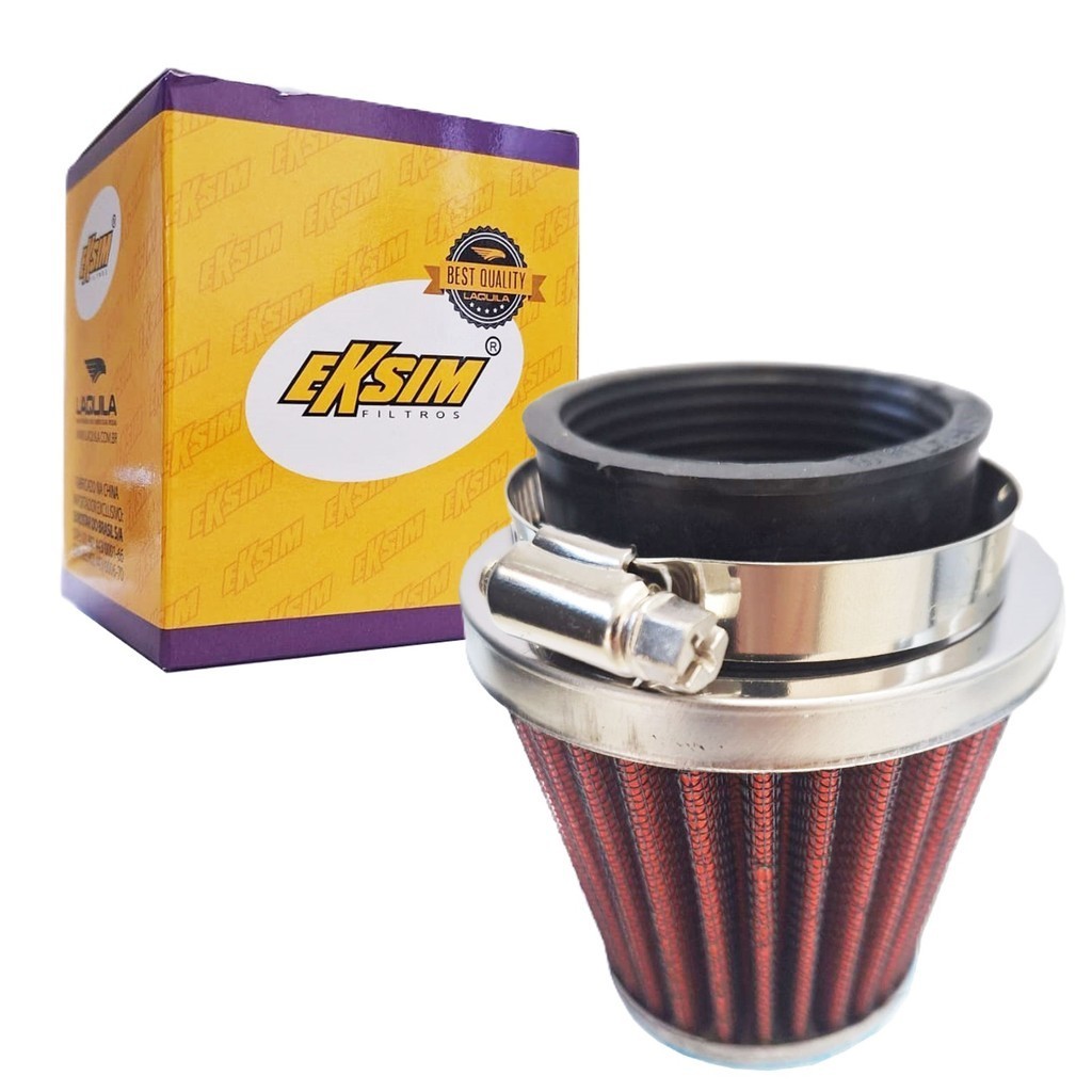 Os filtros Eksim seguem os padrões das peças originais, utilizando tecnologia de ponta e materiais de altíssima qualidade. A linha de produtos é completa e garante o melhor funcionamento do motor, trazendo muito mais durabilidade. A função do filtro de ar esportivo é a mesma que um filtro de ar padrão, porém o diferencial dele é que a peça consegue colocar mais ar para a câmara de combustão dentro do motor. Isso faz com que o veículo consiga realizar uma maior queima de combustível, consequentemente ele ganha um pouco mais potência. Compatível com: HONDA CG 150 TITAN (mix, sport, fan, start..) Todas as versões CG 125 TITAN 2009 A 2019 CG 125 FAN 2009 A 2015 Carburada CG 150 Titan 2004 A 2015 Carburada/Injetada CG 150 Fan 2009 A 2015 Injetada CG 150 Start 2015 A 2016 Injetada NXR150 Bros 2004 A 2015 Carburada/Injetada ADAPTAÇÃO: As 160cc o TBI é 36MM, pode ser aplicado este filtro porém é necessário colocar anel de vedação extra (não acompanha com o filtro). CG 160 Fan 2016 em diante CG 160 Titan 2016 em diante CG 160 Start 2016 em diante NXR 160 Bros 2016 em diante Especificações Técnicas: - Possui braçadeira; - Diâmetro de entrada 45 mm - Confeccionado com uma tela metálica e tecido filtrante; - Lavável - Maior durabilidade que os filtros comuns - Permite uma melhor passagem do ar - Ganho de desempenho em até 07% - Aumento do fluxo de ar em até 28% - Produzido em metal inoxidável - Durável Importante: - Recomendamos que a troca seja feita por um profissional de sua confiança!