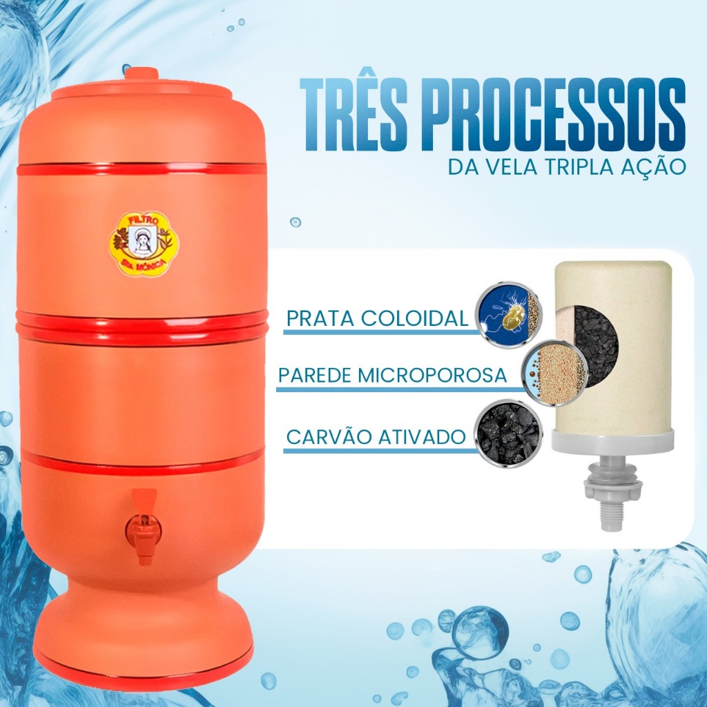 ENVIAMOS COM CAIXA REFORÇADA E COM PROTEÇÃO PARA TER PROBLEMAS NO TRANSPORTE!! * Nome: Filtro de Barro nº0 6 Litros * Marca: Santa Mônica, Santo Antônio, Filtros Helena e Filtros Cacique (Velas: Acqua Azurra e Oasis) * Quantidade: 1 Vela Tripla Ação + 1 Boia Universal * Capacidade: 6 Litros ( 3 + 3 usando a boia) APROVEITE NOSSAS OFERTAS E ADQUIRA PRODUTOS DE QUALIDADE. Garantimos pronta entrega, qualidade e rapidez no envio. O Filtro de Barro é fácil de manusear e manter, dispondo de água sempre fresca, com qualidade e total eficiência no processo de tratamento. É fabricado em argila, faz a troca de calor com o ambiente externo, levando a água a ficar até 5 graus abaixo da temperatura ambiente - mantida sempre fresca. São equipados com vela tradicional e\ou esterilizante e\ou declorante, que retém partículas sólidas e impurezas. CARACTERÍSTICAS: Durabilidade; Eficiência; Água naturalmente fresca e saudável a todo o momento; Fabricado em argila especial; Redução de impurezas presentes na água; ACOMPANHA: • 1 Vela • 1 Boia • 1 Manual de uso e montagem • 1 Torneira • 1 Reservatório superior • 1 Reservatório inferior • 1 Tampa CAPACIDADE DO PRODUTO: 6 Litros Total ( 3 + 3 usando a boia) MANUTENÇÃO: A primeira filtragem recomenda-se descartar, sem o consumo, uma vez que a água é utilizada para limpar o Filtro e ativar a vela. Depois da primeira filtragem, é possível começar a tomar água limpa e mais saudável. Além disso, a água pode apresentar um sabor característico do elemento filtrante cerâmico. Os Filtros de Barro apresentam no início esse sabor similar a sua matéria prima, o que é normal nos Filtros desse tipo de material. O sabor desaparece com o tempo. A recomendação é que o Filtro de Barro seja limpo com um pano úmido ou seco, ou somente uma esponja limpa e água sem utilizar qualquer tipo de produto químico, removendo apenas o acúmulo de poeira na superfície externa e úmida do equipamento. A vela do Filtro deve ser trocada a cada 6 meses de uso, tempo aproximado para filtragem de 500 litros de água. SE A VELA DEIXAR DE FILTRAR, É NECESSÁRIO SUBSTITUÍ-LA.