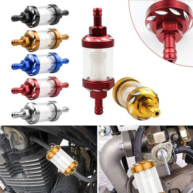 Filtro de Combustível em Alumínio CNC 8mm para Moto | Com Visor de Vidro | Para ATV, Pit Bike, Moto Off-road e Quadricic