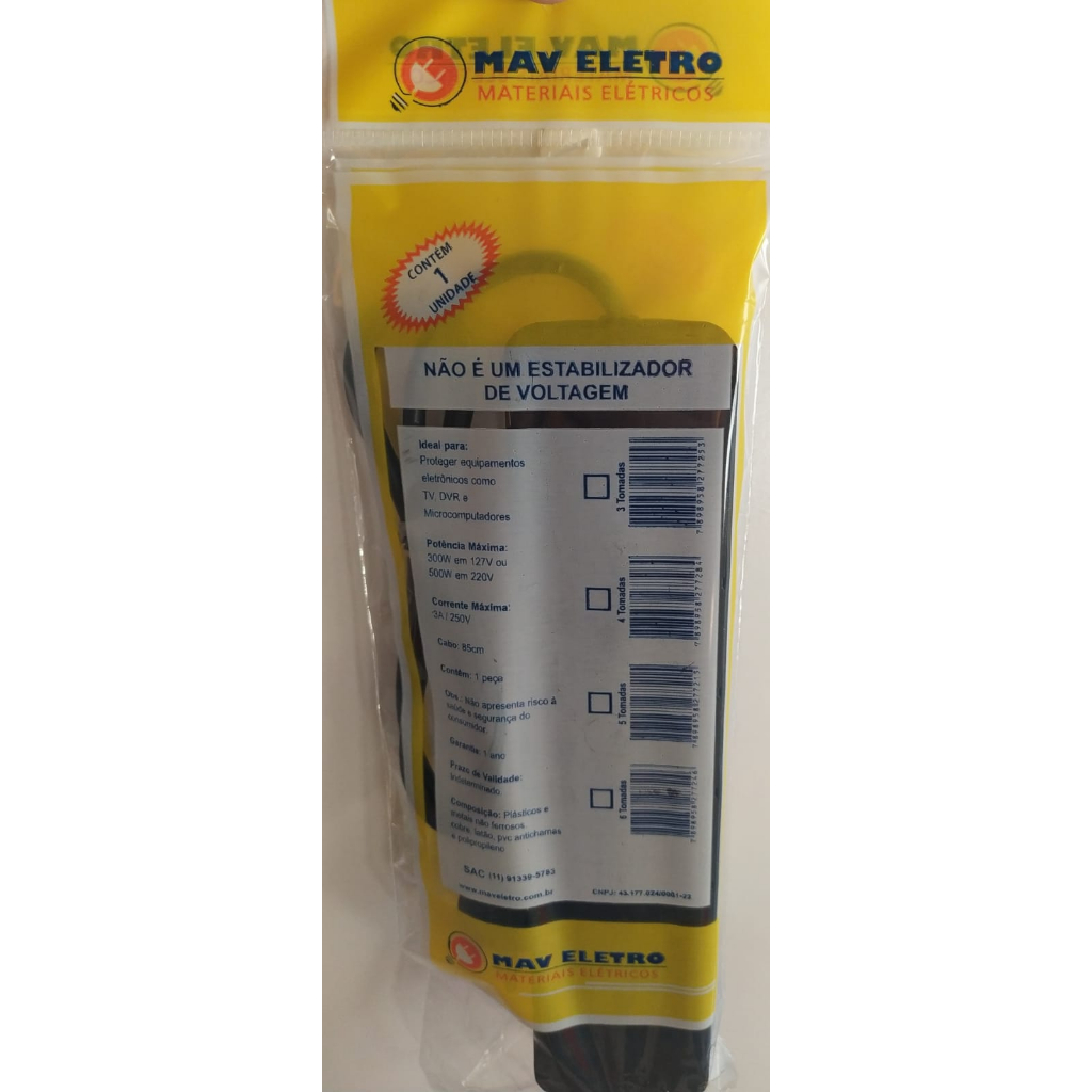 Filtro de Linha 3, 4, 5 e 6 Tomadas Extensão Elétrica Régua Elétrica Características e Especificações: Modelo: 3, 4, 5 e 6 Tomadas *** Escolha na opção Quantidade de Tomadas *** Cor: Preto Com Fusível de Vidro 10a Chave Liga e Desliga Ideal para proteger equipamentos eletrônicos como TV, DVR e microcomputadores. Potência máxima: - 300W em 127V ou 500W em 220V Corrente máxima: 3A / 250V Comprimento do cabo: 85cm Composição: Plásticos e metais não ferrosos, cobre, latão, pvc antichamas e polipropileno.