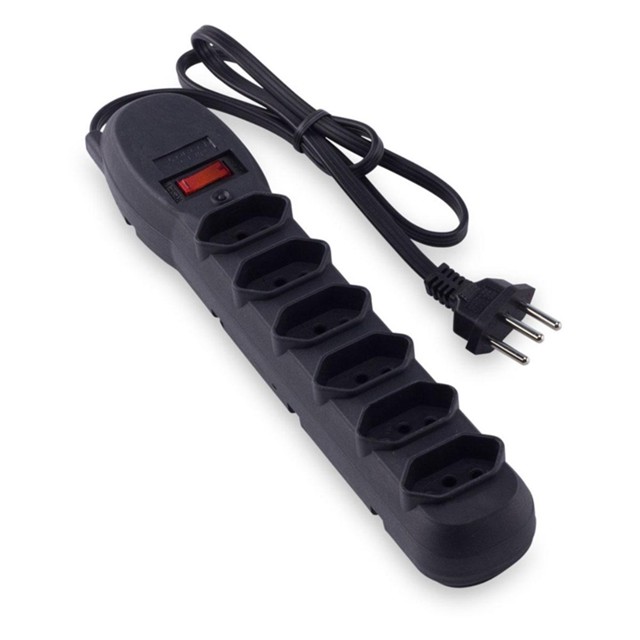Marca: Force Line Modelo: 0060605006 Cor: Preto - Tomadas: 6 Tomadas - Comprimento do Cabo de Força: 0,8 m - Tensão / Potência: 127/1270W e 220V/2200W - Corrente Máxima: 10A - Cabo: PP - 3x0,75mm² - Normas: NBR NM 247-5 - CABO e NBR 14136/2002 - Plugue/Tomada - Gabinete: Plástico PP - Fixação: Com furos para fixação. Pode ser fixado na horizontal ou vertical - Chave: Disjuntor Rearmável 10A com indicador luminoso de funcionamento - Proteção: Sobretensão e Atenua surtos de tensão provenientes de raios e anomalias da rede elétrica, até 125 joules (10/1000µs) de energia - Função: Filtro de Linha Garante uma energia “limpa`` para os equipamentos, minimizando os harmônicos da rede elétrica