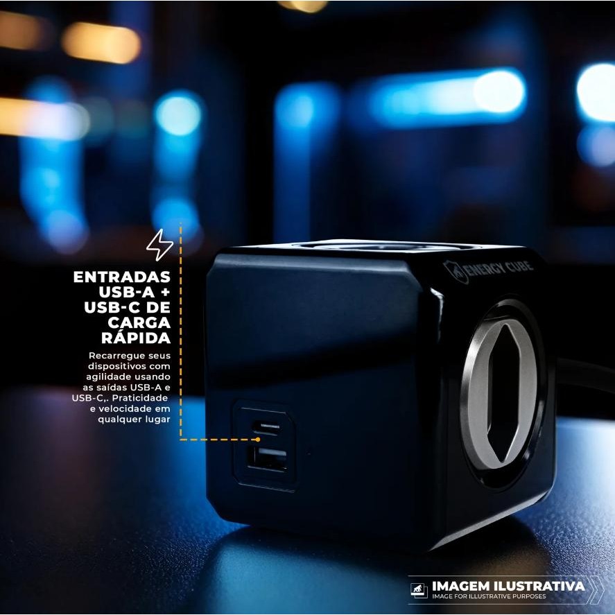 O Carregador Adaptador Bivolt Energy Cube com cabo de 1,5 metros da Gshield é a escolha perfeita para quem busca praticidade, segurança e design inteligente em um único produto. Com acabamento moderno e construção robusta, ele oferece quatro tomadas livres de bloqueio, permitindo o uso simultâneo de vários dispositivos sem interferência entre os plugs. Além disso, conta com duas saídas USB – uma USB-A e uma Tipo-C – que proporcionam carregamento rápido e eficiente para diversos aparelhos, como celulares, tablets, fones de ouvido e outros eletrônicos compatíveis. Seu funcionamento bivolt automático garante praticidade para o uso em diferentes locais, sem a necessidade de adaptadores extras. A instalação é extremamente versátil graças ao sistema de encaixe único, que permite fixar o Energy Cube na horizontal, vertical ou até mesmo de cabeça para baixo, adaptando-se perfeitamente a qualquer ambiente, seja no escritório, em casa ou em viagens. Acompanha uma base adesiva removível que facilita ainda mais a fixação em superfícies lisas, como mesas e bancadas. Com proteção contra sobrecarga e estrutura desenvolvida para garantir segurança no uso diário, inclusive em ambientes com crianças, o Energy Cube oferece um uso tranquilo e duradouro. O cabo de 1,5 metros proporciona mais alcance e flexibilidade para conectar seus dispositivos onde for mais conveniente, sem precisar ficar próximo à tomada. Ideal para quem precisa de organização e funcionalidade com um toque de modernidade, o Carregador Adaptador Energy Cube é a solução prática e eficiente para centralizar conexões e manter todos os seus aparelhos carregados com segurança e rapidez. ESPECIFICAÇÕES Marca: Gshield Entrada: Bivolt automática 110V–220V Saídas: 4 tomadas padrão brasileiro Portas USB: 1 USB-A e 1 USB Tipo-C com carregamento rápido Comprimento do cabo: 1,5 metro Proteção contra sobrecarga Tomadas livres de bloqueio Sistema de encaixe único para fixação (horizontal, vertical ou invertida) Base adesiva reposicionável inclusa Indicado para uso residencial ou corporativo Cor: Preto Compatível com diversos dispositivos eletrônicos Não é um estabilizador de voltagem GARANTIA 2 anos contra defeitos