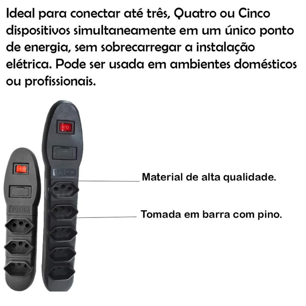 COMERCIAL VIPASA DISTRIBUIDORA. Filtro De Linha Com Pino Para Tomada 2P+T 10A Interruptor Fusível Bivolt Prático Plug Rápido Sem Fio Tomada Em Barra Com 3 Pinos 2P+T 10A Com Interruptor Fusível Bivolt Prático Plug Rápido Sem Cabo Top Tomada Em Barra Com 3 Pinos 2P+T 10A Com Interruptor Fusível Bivolt Prático Casa Sem Cabo Top Filtro De Linha De Tomada Sem Cabo 10A 3 Pinos 2P+T Com Interruptor Fusível Bivolt Prático Casa Filtro de Linha Voltim Preto 10A 2P+T — 3, 4 ou 5 Saídas (Variação de Modelos) Garanta mais segurança, praticidade e organização para os seus equipamentos elétricos com os Filtros de Linha Voltim, disponíveis nas versões com 3, 4 ou 5 tomadas. Projetados para uso residencial, comercial e profissional, esses filtros possuem pino tripolar 2P+T, suportando até 10A e seguindo o padrão brasileiro NBR 14136. Com design robusto e acabamento preto elegante, são ideais para conectar TVs, computadores, carregadores e muito mais! Produto Original Voltim Protege e organiza suas conexões elétricas Disponível com 3, 4 ou 5 saídas Modelos Disponíveis Neste Anúncio: Filtro de Linha 3 Saídas 2P+T 10A Preto – V-46/3PT Voltim 🔹 3 Tomadas 2P+T (padrão brasileiro) 🔹 Corrente máxima: 10A 🔹 Ideal para uso residencial e escritório Filtro de Linha 4 Saídas 2P+T 10A Preto – V-46/4PT Voltim 🔹 4 Tomadas 2P+T 🔹 Corrente máxima: 10A 🔹 Perfeito para conectar mais equipamentos simultaneamente Filtro de Linha 5 Saídas 2P+T 10A Preto – V-46/5PT Voltim 🔹 5 Tomadas 2P+T 🔹 Corrente máxima: 10A 🔹 Ideal para home office, gamer ou setups com muitos aparelhos ✅ Características Gerais: Marca: Voltim Cor: Preto Pino: 2P+T tripolar (com aterramento) Padrão: NBR 14136 (tomadas 10A padrão brasileiro) Tensão: 127V ou 220V (bivolt, conforme a rede elétrica) Corrente máxima suportada: 10A Material: Corpo em termoplástico de alta resistência Interruptor: Liga/Desliga com iluminação (confirma se está ligado) Proteção: Contra sobrecarga elétrica (fusível interno) Cabo: Tripolar flexível com plug macho 2P+T Modo de Uso: Conecte o filtro de linha à tomada da rede elétrica. Ligue os equipamentos nas saídas disponíveis (3, 4 ou 5). Acione o interruptor para energizar as tomadas. Utilize dentro do limite de corrente (até 10A no total). Dimensões Aproximadas: ModeloAlturaLarguraComprimentoPeso3 Saídas (V-46/3PT)4cm6cm20cm250g4 Saídas (V-46/4PT)4cm6cm25cm300g5 Saídas (V-46/5PT)4cm6cm30cm350g 🚀 Benefícios: Evita sobrecargas e curtos-circuitos Mantém seu ambiente organizado e seguro Permite ligar vários aparelhos ao mesmo tempo Ideal para home office, TV, computador, som, impressoras, roteadores, etc. filtro de linha 3 saídas 10a voltim, extensão 4 tomadas preta 10a, filtro 5 tomadas com interruptor, régua elétrica com proteção 10a, filtro de linha padrão brasileiro, extensão elétrica bivolt com fusível, filtro linha tripolar 2p+t 10a Filtro de Linha Voltim 10A 2P+T Preto com 3, 4 ou 5 Saídas com Interruptor Extensão Filtro de Linha Voltim 10A Preto 3, 4 e 5 Tomadas com Interruptor Filtro de Linha 10A Voltim Preto 2P+T 3/4/5 Saídas com Proteção e Interruptor ⚠️ Informações Importantes: ✔️ Produto certificado e dentro das normas ABNT ✔️ Suporta até 10A no total das saídas conectadas ✔️ Uso recomendado para ambientes internos ✔️ Selecione acima a variação desejada antes da compra (3, 4 ou 5 saídas) COMERCIAL VIPASA DISTRIBUIDORA.