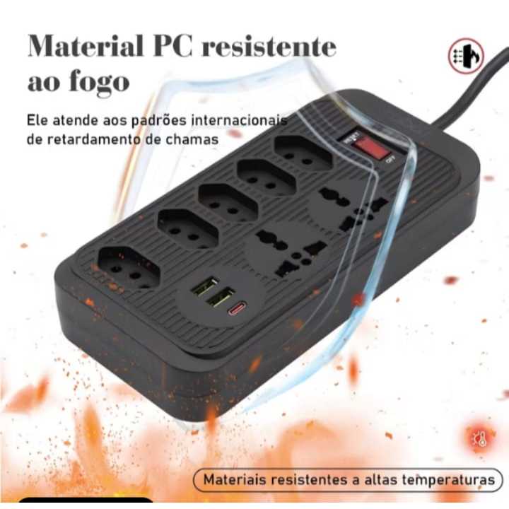 Filtro de Linha, Extensão Tomada, Alimentação de 1,9 metros (PRETO) A Extensão 5 tomadas, 2 padrão universal, 2 USB e uma entrada TIPO C da COIBEU é a solução ideal para quem busca praticidade e segurança no dia a dia. Sua corrente máxima de 10 A garante eficiência no uso de múltiplos aparelhos simultaneamente, enquanto a proteção contra sobrecarga proporciona tranquilidade ao conectar seus eletrônicos. O design compacto e funcional se adapta a diferentes ambientes, tornando-se um acessório indispensável para sua casa ou escritório.