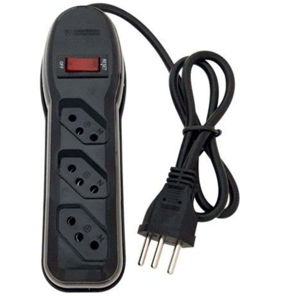 Filtro de Linha Regua eletrica 3 Tomadas cabo 1 metro Preto
