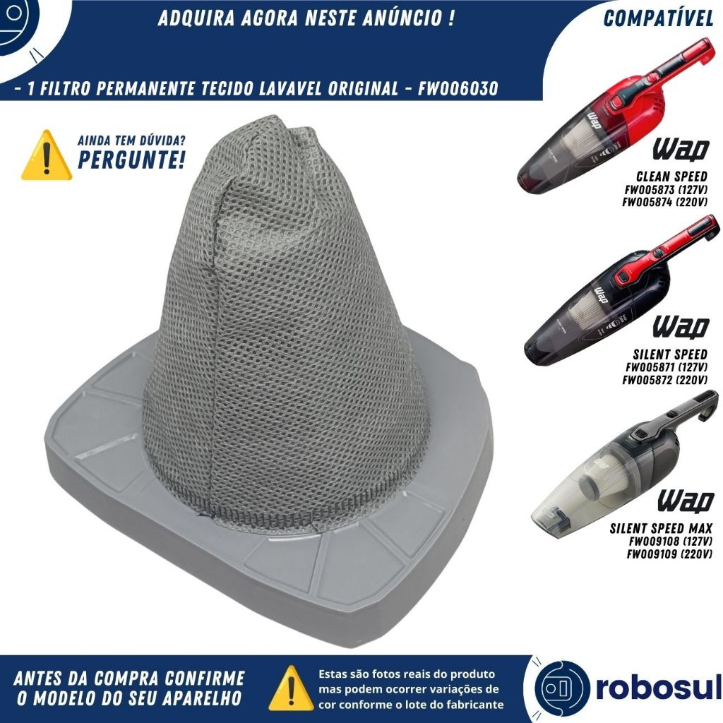 | Filtro de Pano Permanente Lavável Para Aspirador Wap Silent Speed M... este produto | R$ 41,90 | — | 4.9/5 | 1 |