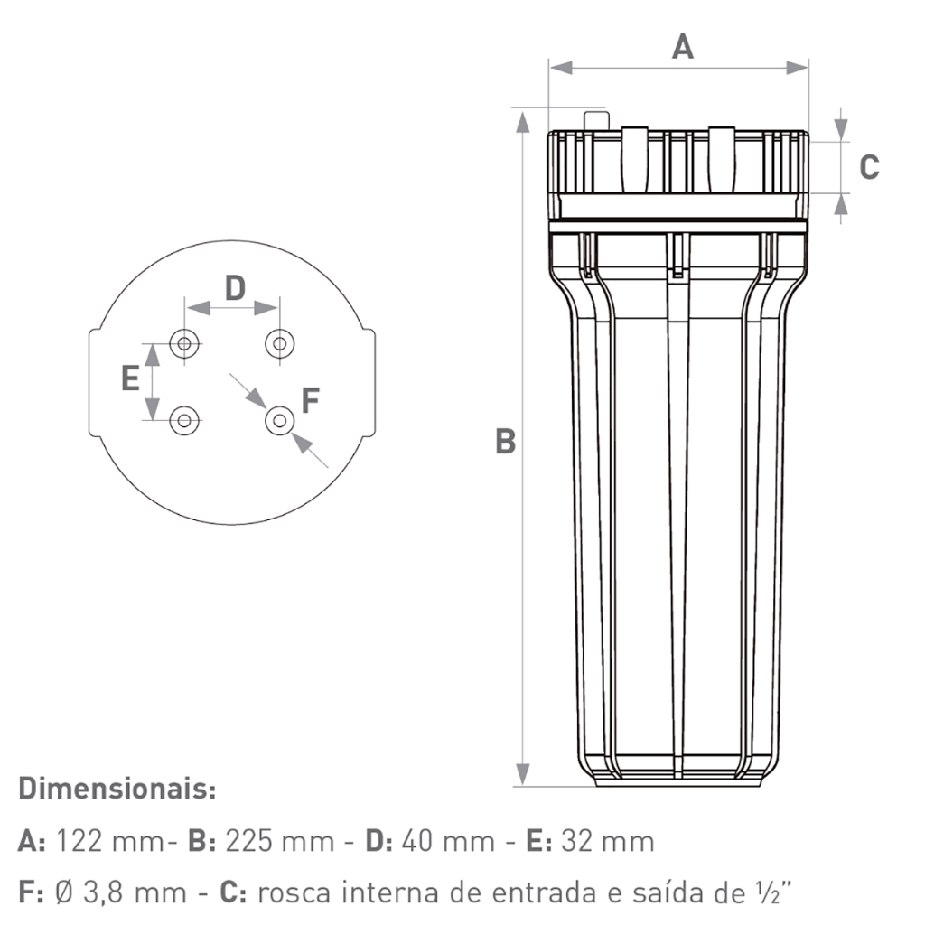 Desfrute de água pura e saborosa com o Filtro Declorador Clor 7 da Casa e Garagem. Experimente a eficiência do Filtro Declorador Ponto de Uso Hidrofiltros Clor 7, projetado para remover cloro, odores e sabores indesejados da sua água. Ideal para uso em sucos, café, cozinhar alimentos, bebedouros e muito mais, este filtro garante água de qualidade superior em qualquer ponto de sua casa. Na Casa e Garagem, oferecemos o Filtro Declorador Hidrofiltros Clor 7 como a solução ideal para quem busca qualidade e segurança no consumo de água. Transforme qualquer ponto da sua casa num local onde a água pura é uma certeza. Vantagens: Marca e Modelo: Hidrofiltros Clor 7" oferece confiabilidade e eficiência inigualáveis no tratamento de água. Tipo de Filtro: Especializado como declorador, ele remove eficazmente o cloro, melhorando a qualidade da água. Versatilidade de Uso: Seja para preparar sucos frescos ou coar um café perfeito, este filtro é versátil e indispensável. Elimina Impurezas: Desfrute de água sem o cheiro e gosto indesejados, tornando-a mais agradável para consumo diário. Instalação Flexível: Projetado para fácil instalação em diferentes locais, adaptando-se às necessidades específicas da sua casa. Dados Técnicos: Temperatura de operação: 5°C mín / 50ºC máx Pressão de operação: 19,6 kPa mín./ 392 kPa máx. Dimensionais: A: 122 mm- B: 225 mm - D: 40 mm - E: 32 mm Furação: Ø 3,8 mm - C: rosca interna de entrada e saída de ½” Composição copo e tampa: polipropileno Grau de Filtração: 5 micra Vazão: 100 l/h Peso bruto: 1,06 kg Peso líquido: 0,967 kg Peso aproximado com água: 1,517 kg Garantia: - 3 meses pelo fabricante.