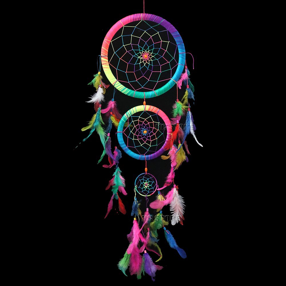 Filtro Dos Sonhos Colorido Reggae 3 Aros Grande 60cm Apanhador decoração de parede amuleto tie dye tem frete grátis?
