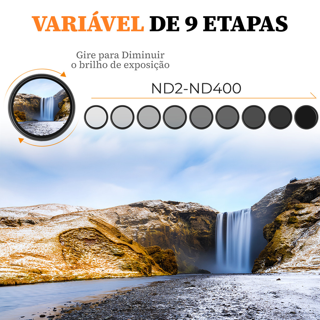 ***ENVIO E EMISSÃO DE NF PARA TODO BRASIL*** ***GARANTIA DE 90 DIAS*** ***O PACOTE INCLUI: 1 LENTE FILTRO 52mm*** Filtro K&F Concept de Densidade Neutra Variável - O Poder da Criatividade nas Suas Mãos! Desperte a sua criatividade e leve suas fotos para o próximo nível com o filtro K&F Concept de Densidade Neutra Variável. Ideal para quem busca resultados profissionais e imagens impressionantes, este filtro oferece uma série de características que vão transformar sua fotografia. Confira por que você não pode ficar sem ele! Ótica Externa Ampla: Diga adeus ao efeito de vinheta em ângulos muito abertos. Com sua ótica externa mais ampla, este filtro foi projetado para reduzir distorções, entregando fotos nítidas e de alta qualidade, sem os inconvenientes do vinheta. Tecnologia K&F Concept em Vidro Óptico de Alta Qualidade: Cada detalhe deste filtro foi elaborado para garantir um desempenho superior, utilizando vidro ótico de qualidade premium, o que assegura imagens com cores vivas, sem perdas ou distorções. 8 Opções em Um Único Filtro: Não há mais necessidade de carregar vários filtros! O filtro de Densidade Neutra Variável K&F Concept combina 8 diferentes opções de redução de luz em um único acessório. Economize espaço na mochila, tempo na escolha do filtro ideal e, o melhor de tudo, dinheiro! Perfeito para Cenas com Movimento: Se você ama capturar a beleza de rios, cachoeiras, mar ou nuvens ao vento, este filtro é essencial! Ele controla a entrada de luz, permitindo que você utilize velocidades mais baixas de obturação e, assim, crie desfoques incríveis em elementos em movimento, dando um toque único e artístico às suas fotos. Compatibilidade Ampla com Lentes Sony: Não se preocupe em escolher entre filtros para diferentes lentes. Este filtro é compatível com uma série de lentes Sony, incluindo os modelos NEX-5TL, NEX-3NL, A5000, A6000, NEX-6, ILCE-5000L, ILCE-6000L e a lente PZ 16-50mm F3.5-5.6 OSS, proporcionando versatilidade e praticidade no seu kit fotográfico. Qualidade K&F Concept: A marca K&F Concept é reconhecida mundialmente pela sua excelência e dedicação à qualidade. Fabricado por uma equipe de profissionais apaixonados pela fotografia, o filtro garante não só alta performance, mas também durabilidade e resistência para acompanhar suas aventuras fotográficas. Não perca a chance de aprimorar suas fotos e liberar toda a sua criatividade com o Filtro K&F Concept de Densidade Neutra Variável. Com ele, suas imagens serão ainda mais impressionantes e cheias de estilo!